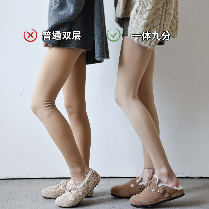 Nine-point Bare Leg Magic Pantyhose For Women, Autumn And Winter, Fleece-lined And Thickened, Single-layer Integrated Base Layer Pantyhose, Natural Nude Feel, Skin-water Glossy Pantyhose.