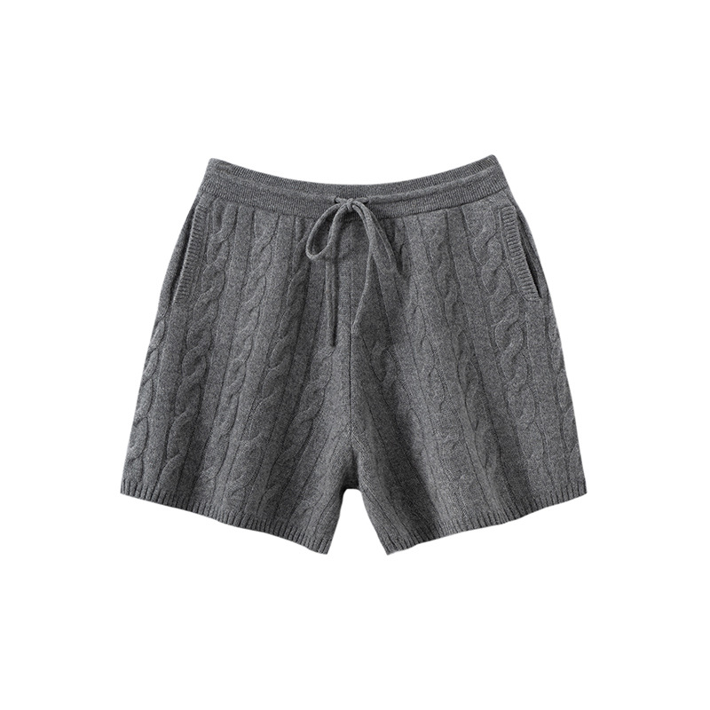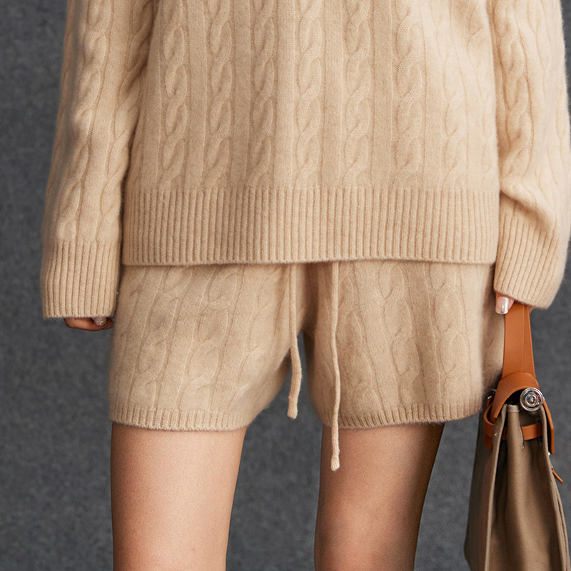 山羊绒女士麻花老钱风抽绳宽松百搭休闲短裤秋简约慵懒风