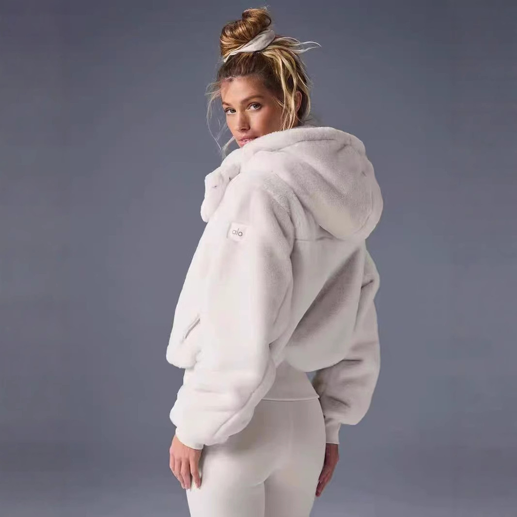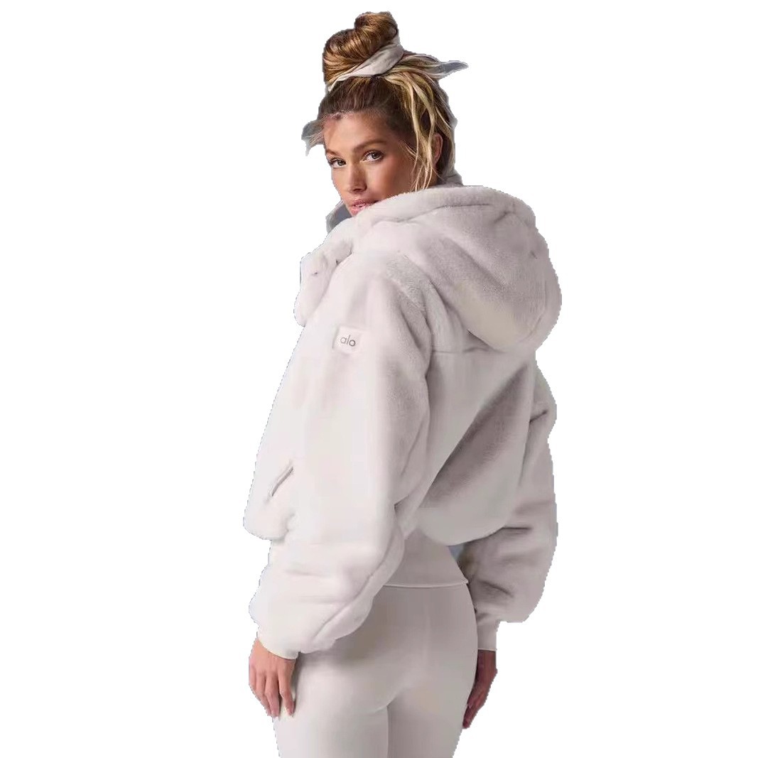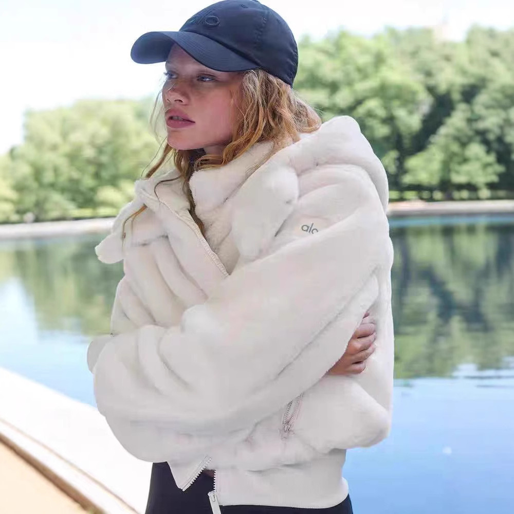 American Retro Eco-friendly Fur Hooded Short Zip-up Coat