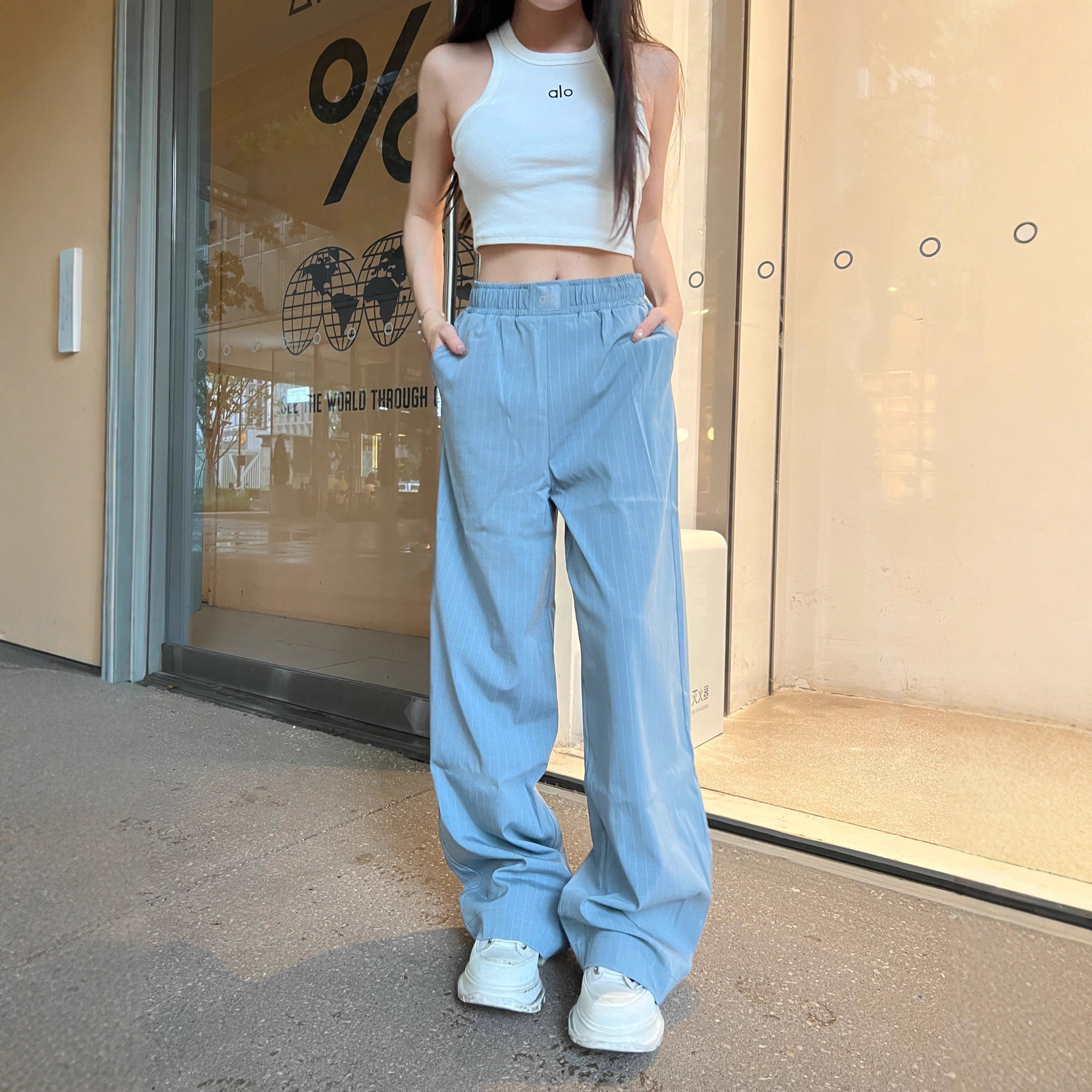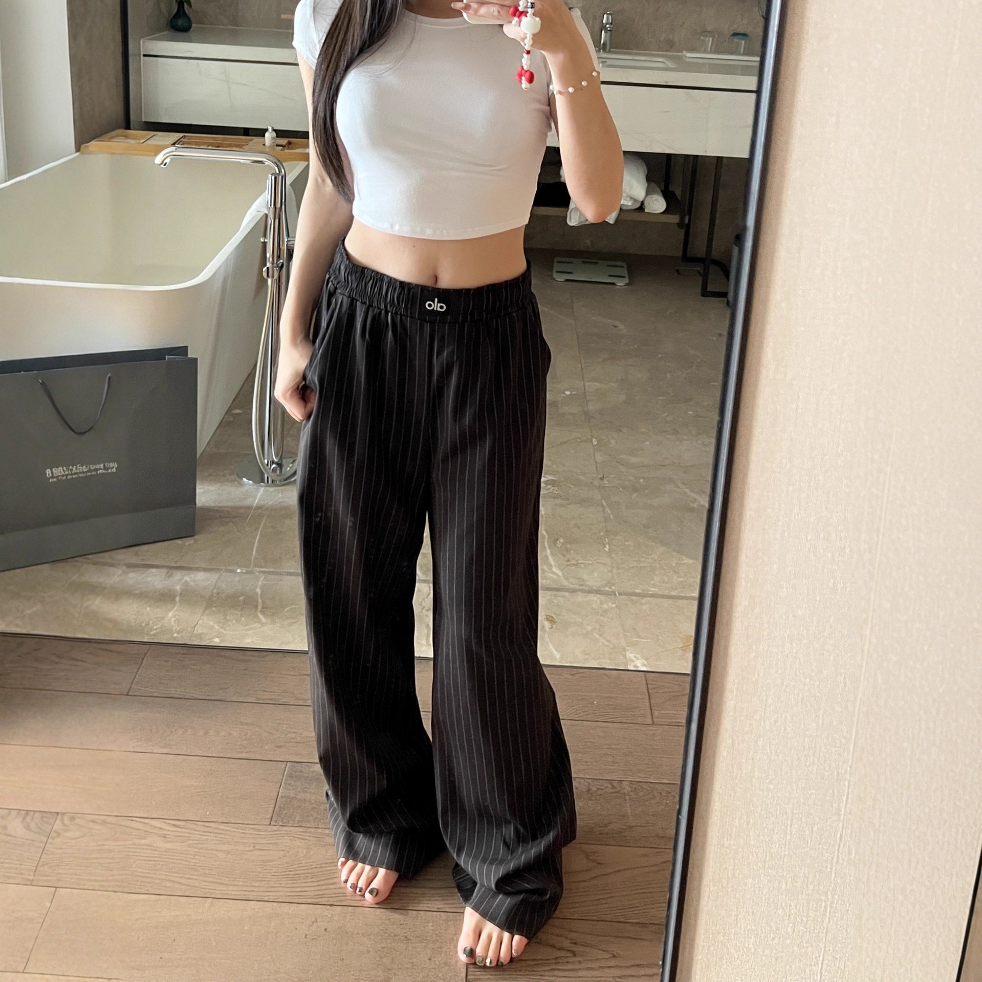 Flowy Wide-leg Pants, Loose And Floor-length, Black Straight Leg With Elastic Waistband.