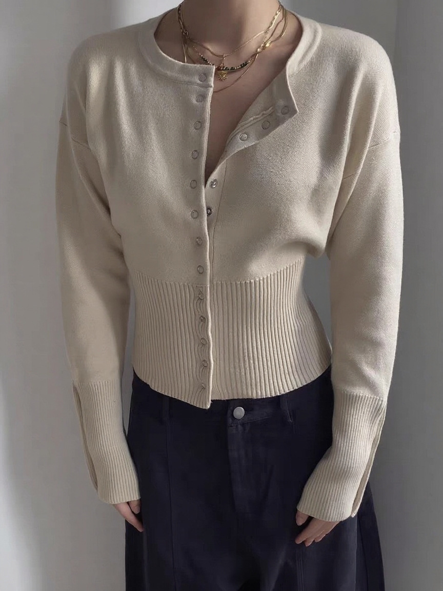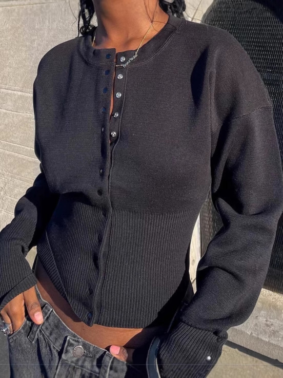 High-waisted Women's Round Neck Single-breasted Knit Top, A Niche Short Style For Layering.