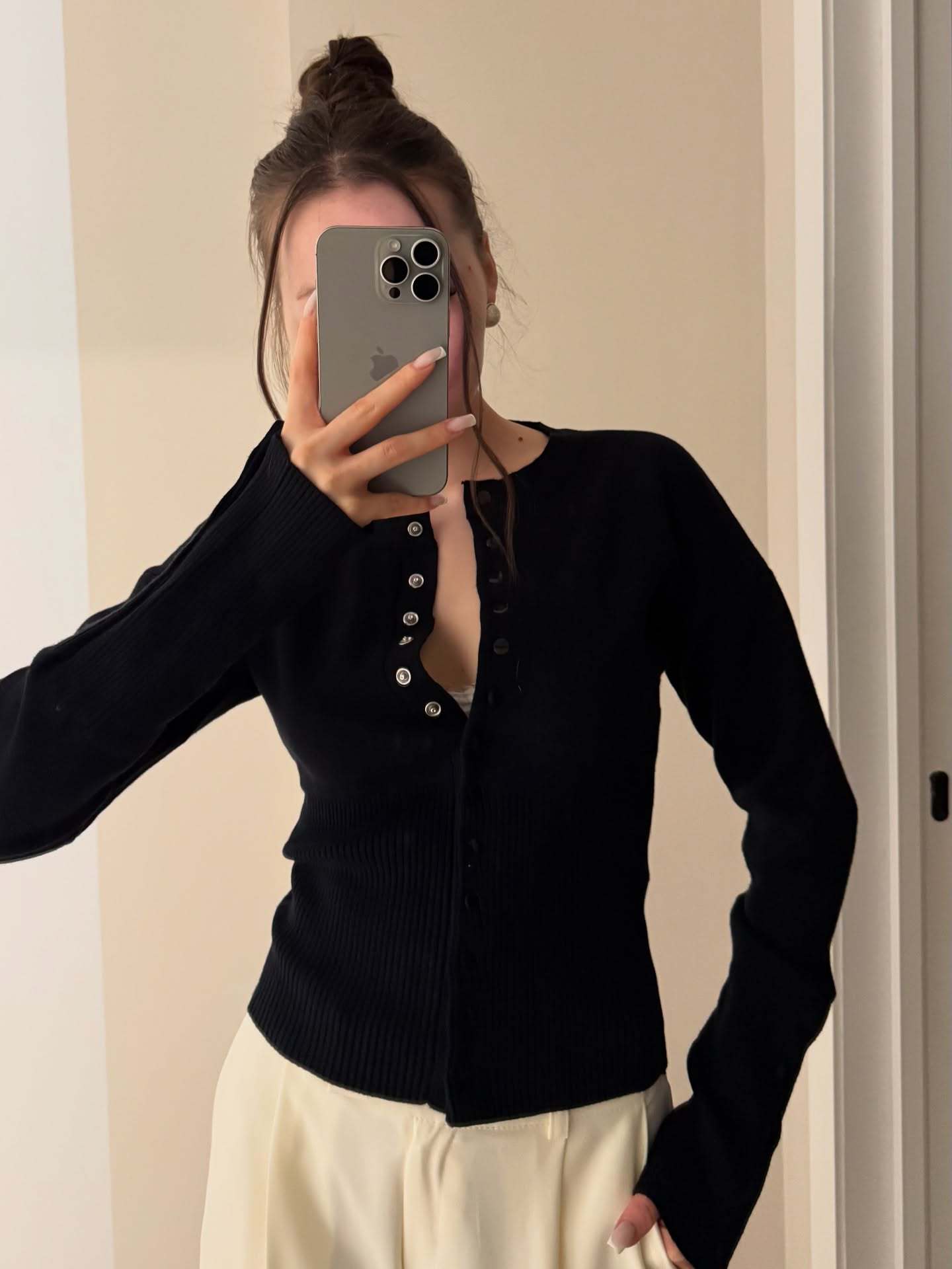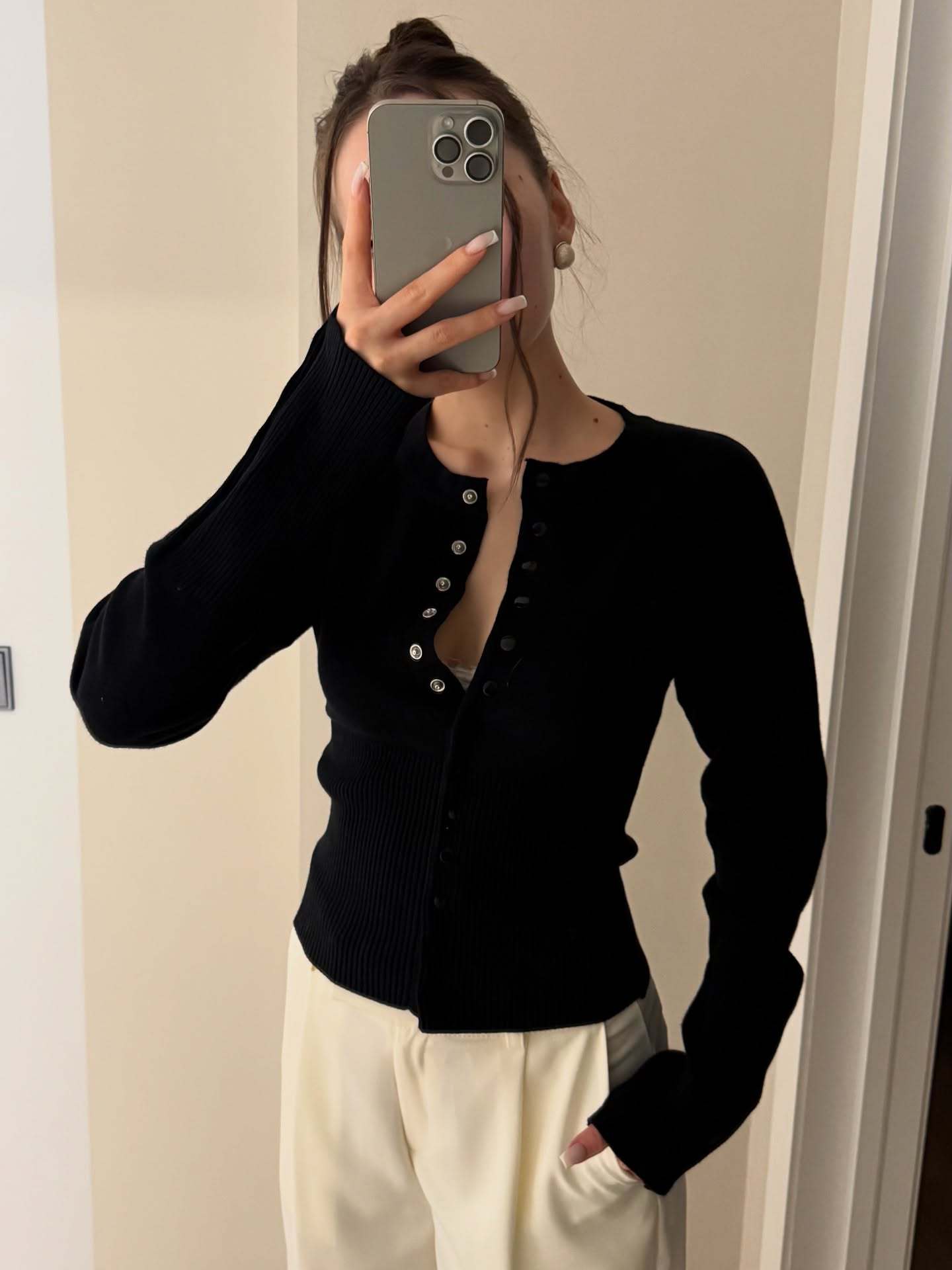 French Classic Basic Style Elegant Design Concealed Button Round Neck Casual Knit Cardigan