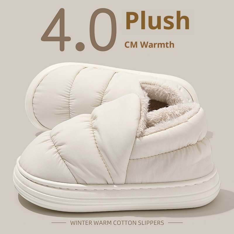 Women's Winter Cotton Shoes With Down Fabric, Waterproof, Thick-Soled, Warm, Indoor Non-Slip, Fleece-Lined, Closed-Back Cotton Slippers For Men, Suitable For Autumn And Winter