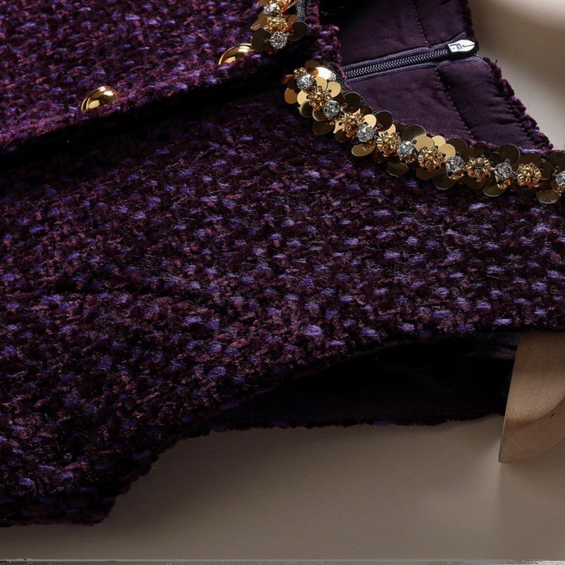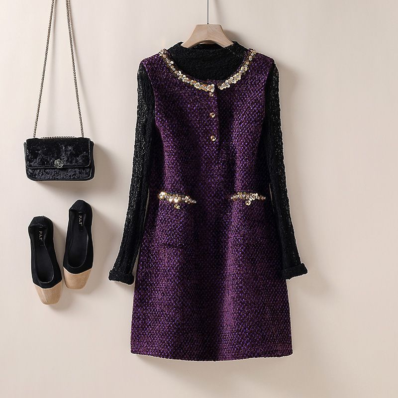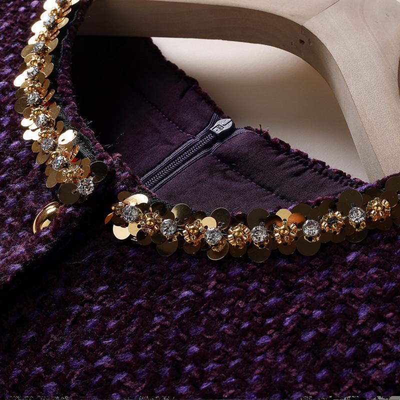 Chanel-style Wool Vest Dress, Beaded Sequined Tweed A-line Slimming Dress