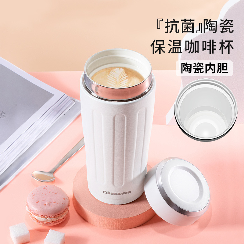 Hasacasa Coffee Thermos Cup Women's Ceramic Liner Students Simple Portable Accompaniant High-value Large Caliber Water Cup