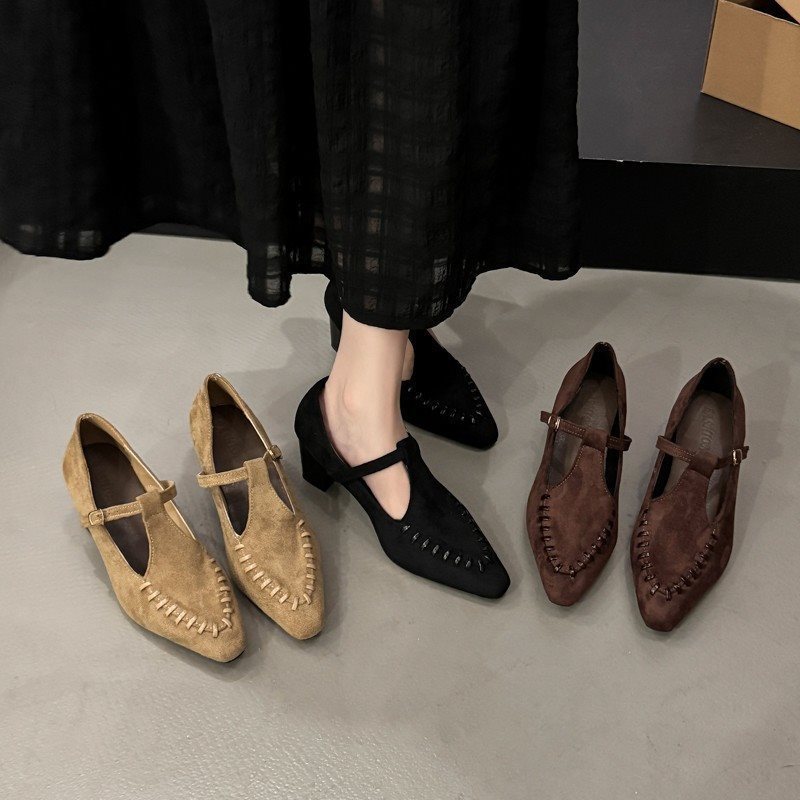 Pointed-toe High-heeled Retro Mary Jane Shoes