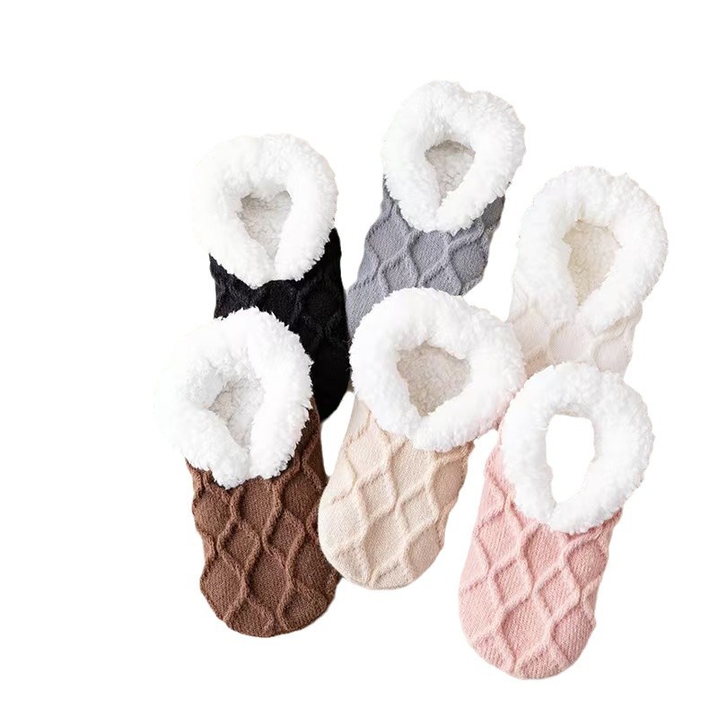 Floor Socks Winter Adult Fleece-lined Thickened Warm Shoes And Socks Women's Home Non-Slip Foot Warm Foot Socks Lamb Fleece Shoes And Socks