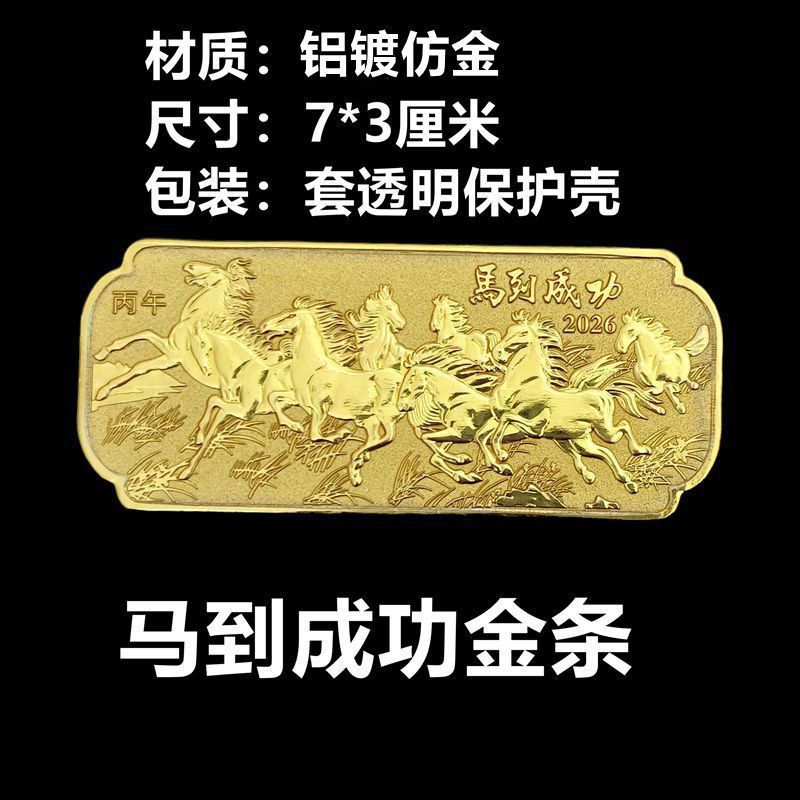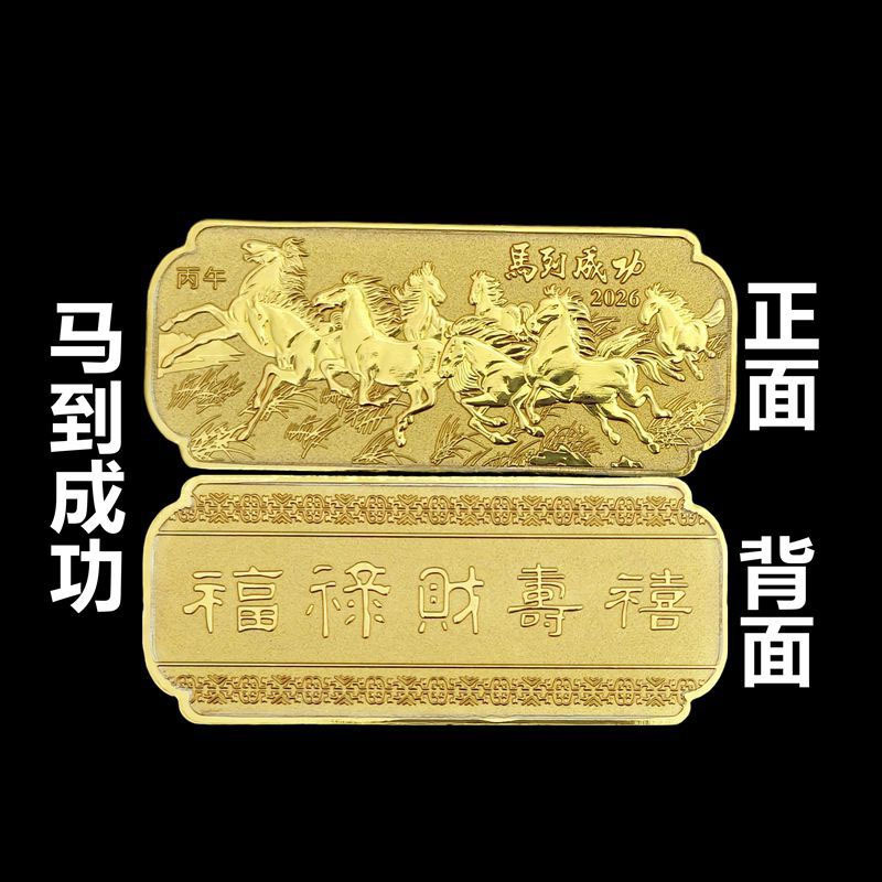 2026 Success In Gold Plated Gold Bar Gold Coin Zodiac Horse Single Commemorative Gold Bar Horse Commemorative Medal Ornament Gift