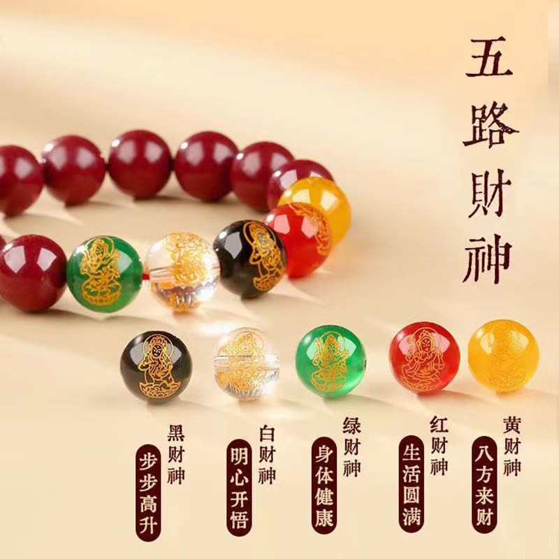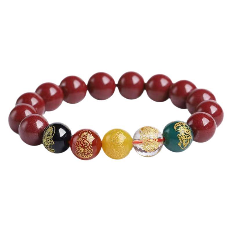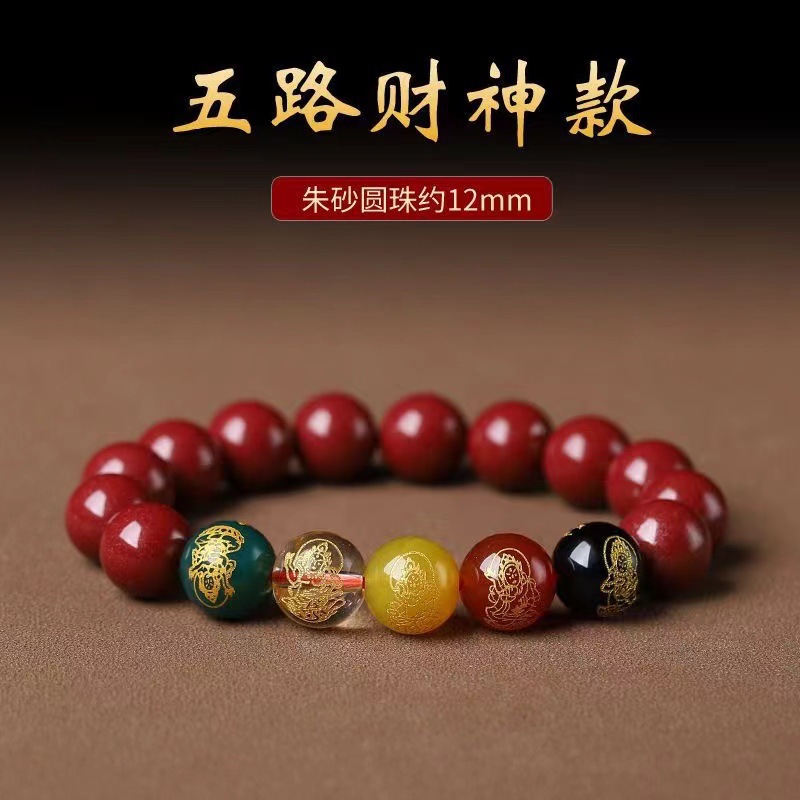 2026 Zodiac Year Five Gods Of Wealth Purple Gold Sand Cinnabar Bracelet Beads For Men And Women Couples Gift