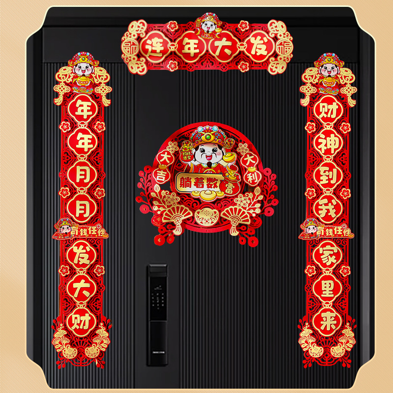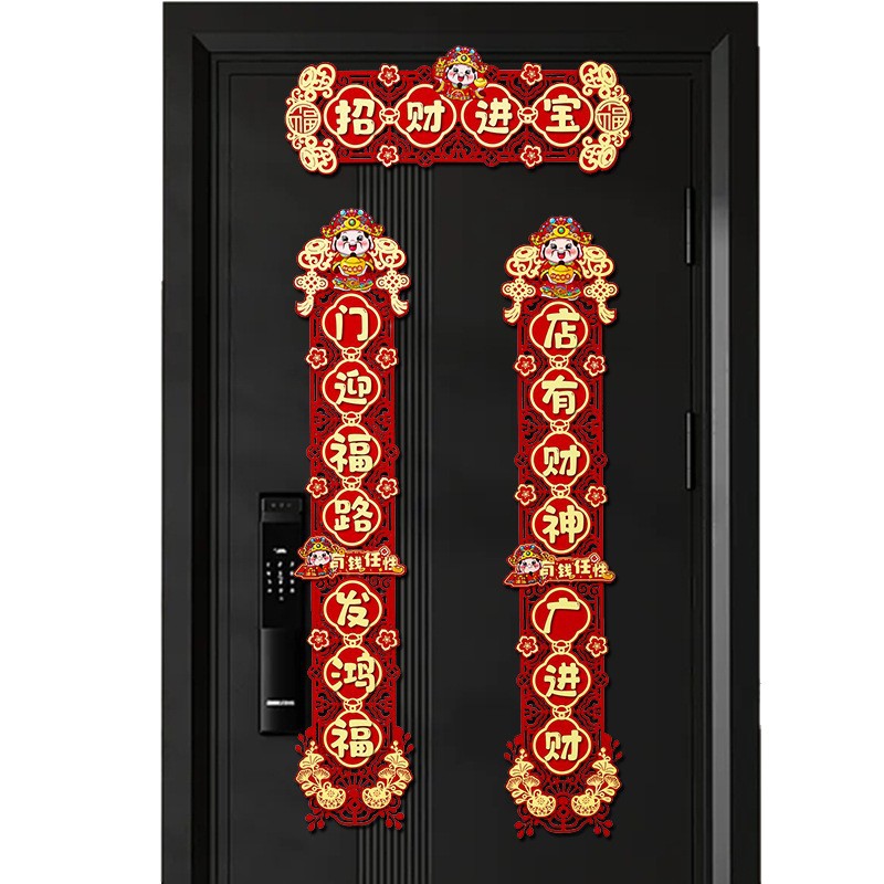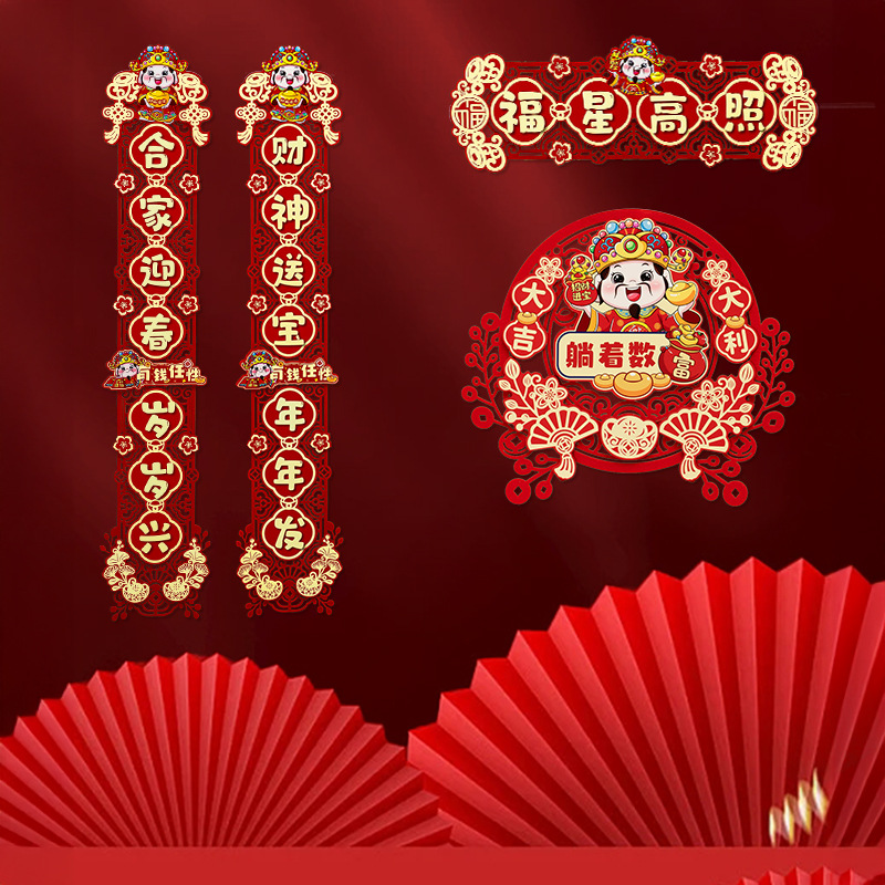 2026 Year God Of Wealth Couplets Spring Festival High-End Velvet Cloth Fortune Character Door Couplets Year Entrance Decoration Door Spring Couplets