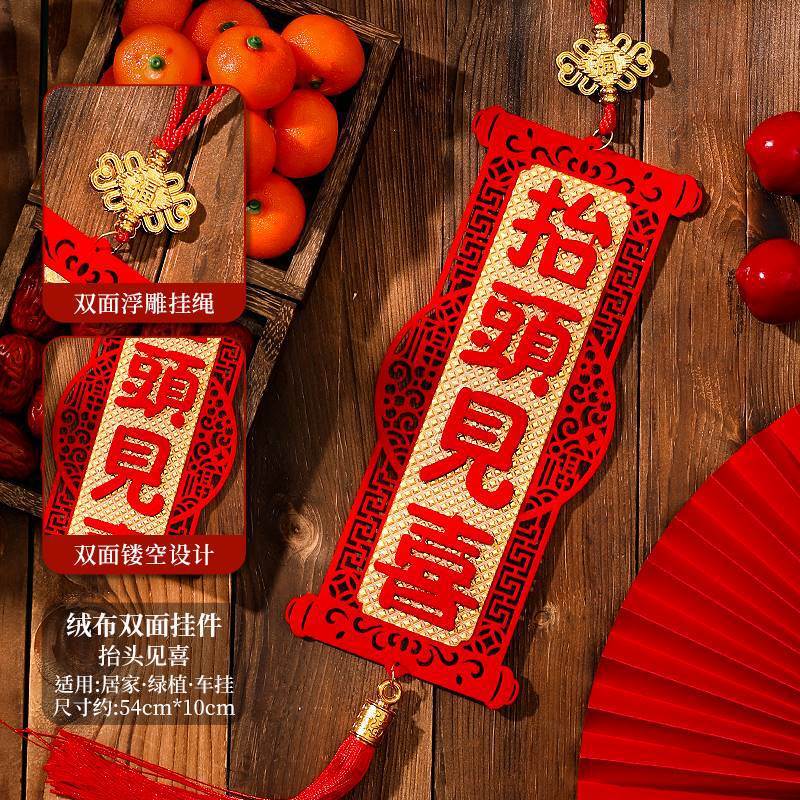2026 Year Of The Horse Year Pendant Double-Sided Three-Dimensional Velvet Spring Festival Decoration Four-Character Couplet Hanging Ornament