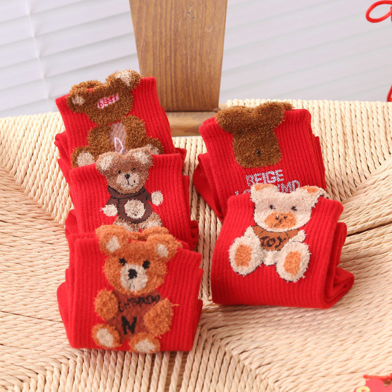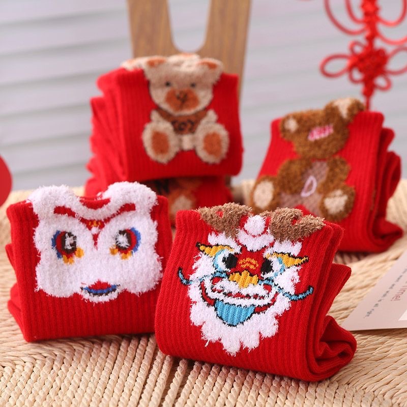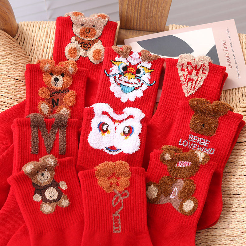 Red Socks For The Year Of Birth, 2026 Year Of The Horse, Festive Couple Mid-Calf Socks For The Year, Cotton Socks With Feather Yarn, Warm And Thick Long Socks