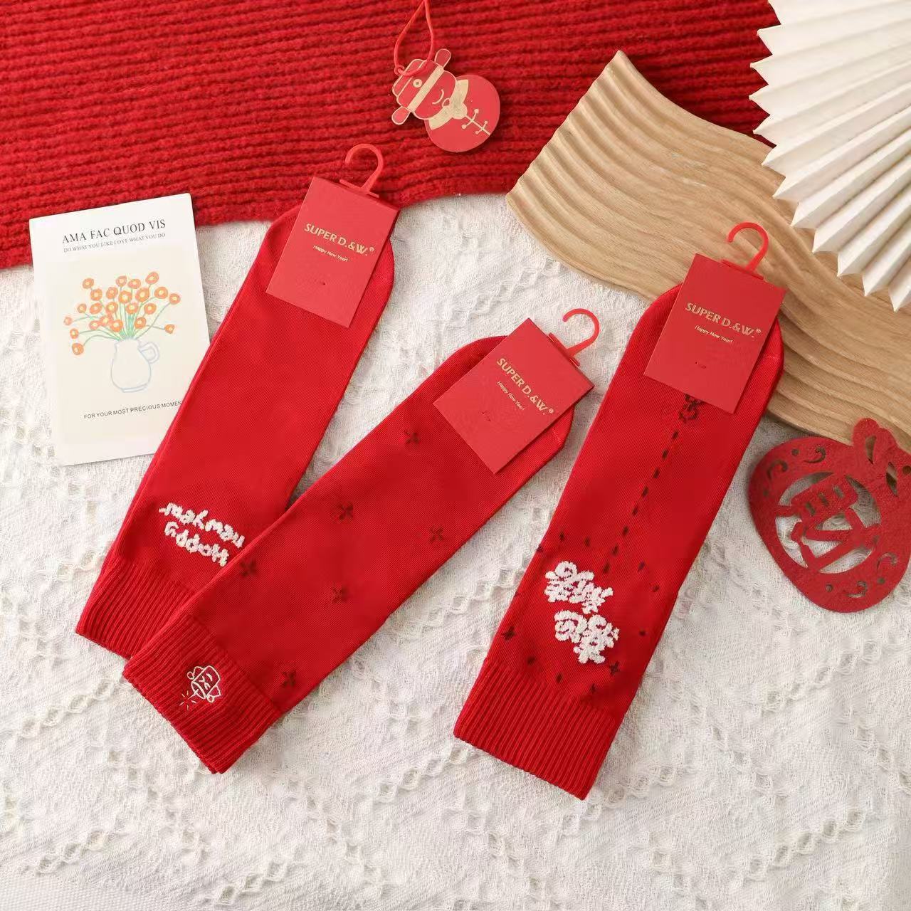 2026 Year Of The Horse Zodiac Cartoon Long Cotton Socks Year Red Socks Cute Christmas High Socks