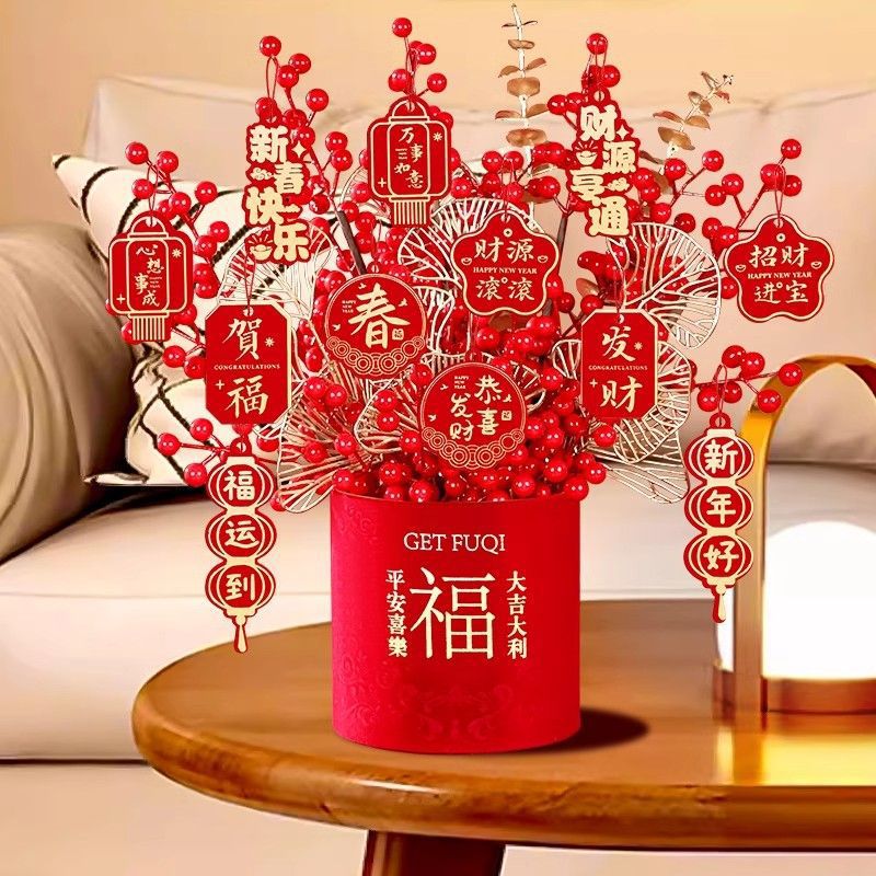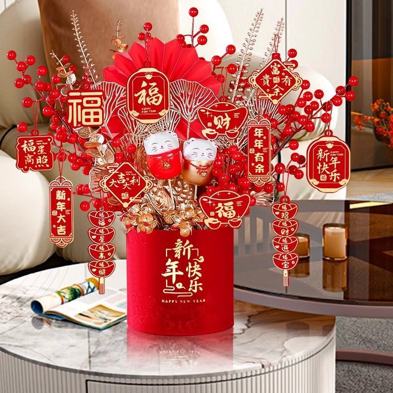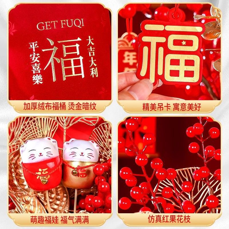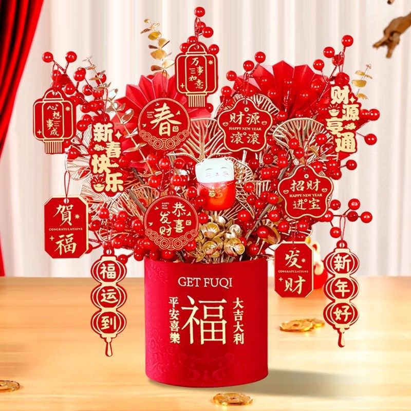 Spring Festival Fortune Bucket Hug Bucket 2026 Year Decoration Artificial Flower Arrangement Year Of The Snake Year Prosperity Fruit Year's Eve Flower Ornament