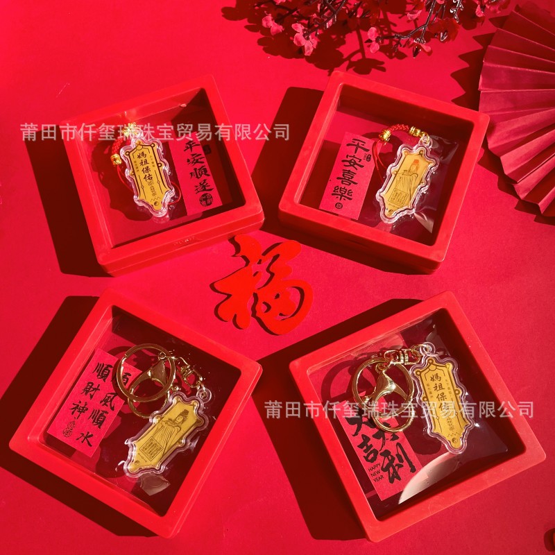 Gold Foil Mazu Key Chain Taiwan Mazu Empress Pendant Meizhou Mazu Pendant Palace Temple Creative Gifts