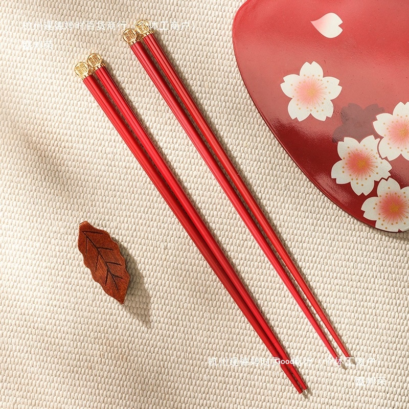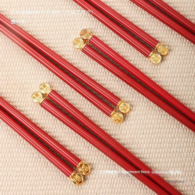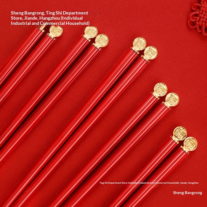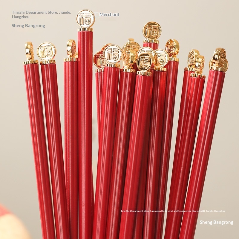 10 Pairs Premium Red Chopsticks – Non-Slip Heat Resistant Alloy Fu Character Chinese Wedding & Housewarming Luxury Gift Set