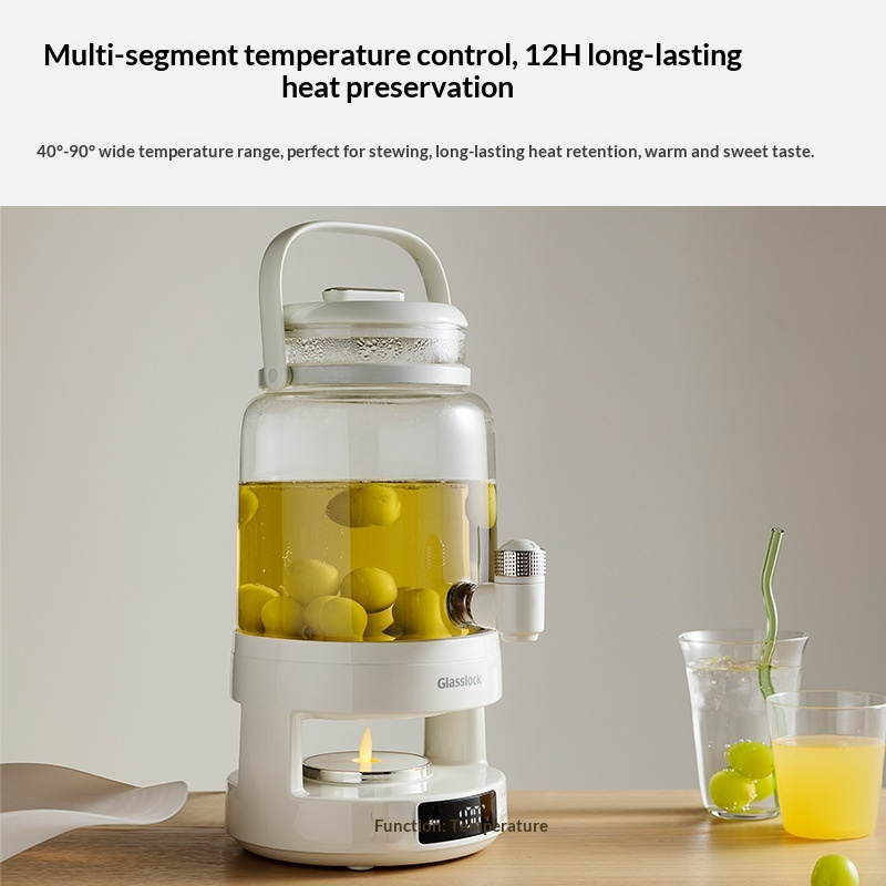 Glasslock 3.5L Large Capacity Glass Tea Kettle With Spout – Constant Temperature Multifunctional Brewing Pot For Fruit Wine, Herbal Tea & Party