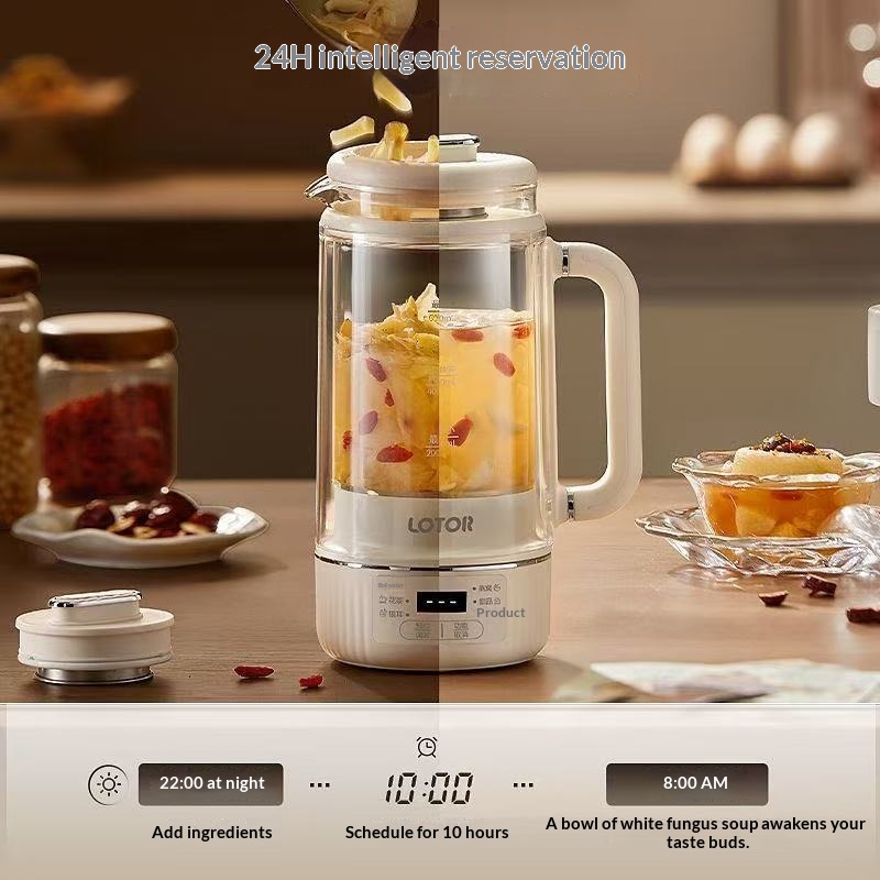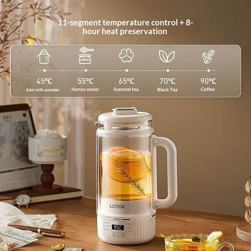 LOTOR Mini Glass Health Kettle 0.8L – Multifunctional Tea Maker & Slow Cooker Compact Office Herbal Tea Pot