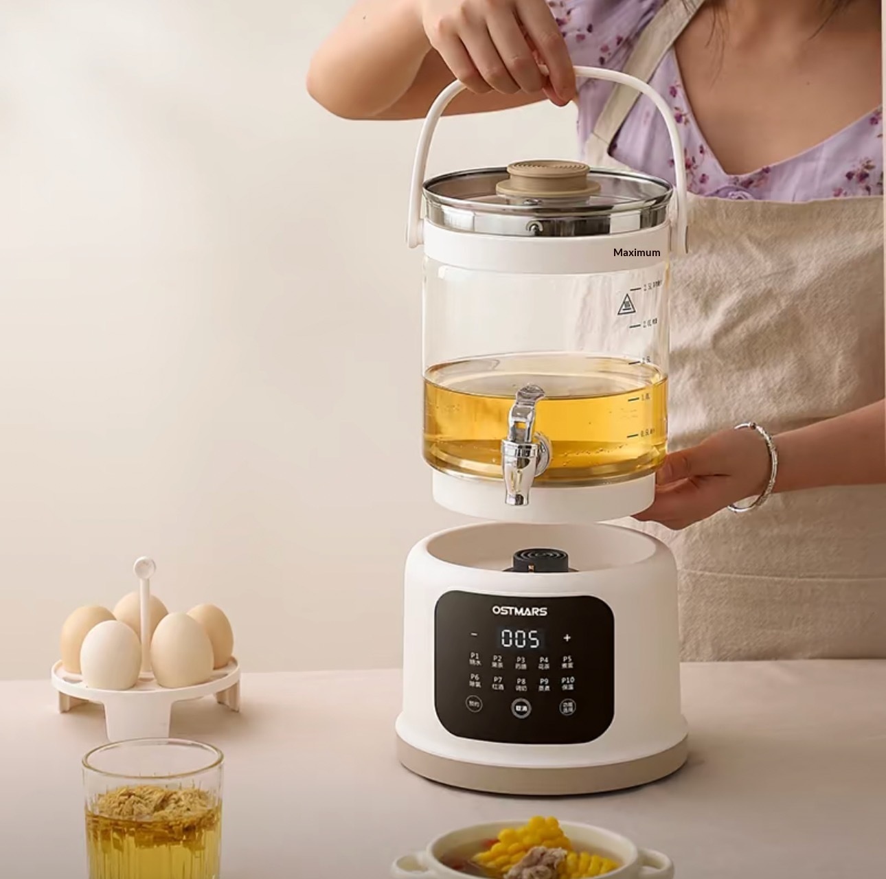 3.5L OSTMARS Glass Health Pot With Tap – Multifunction Constant Temperature Flower Tea Slow Cooker Dispenser