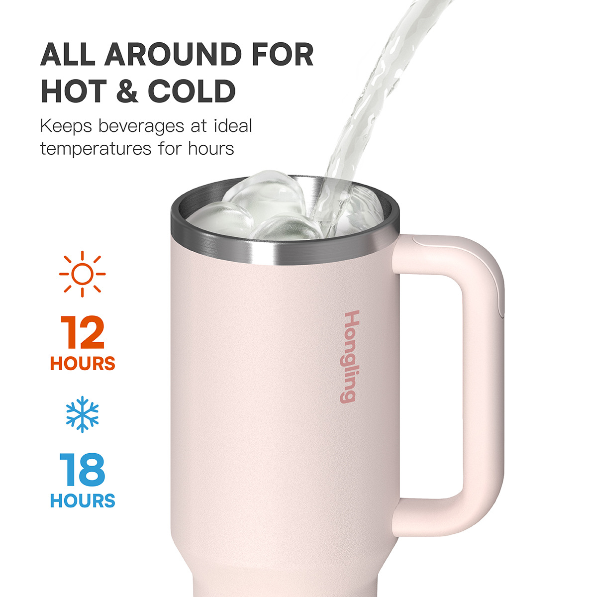 's Popular 40oz Handle Cup 304 Stainless Steel Double Drinking Straw Thermos Cup High-Looking Ice Cup