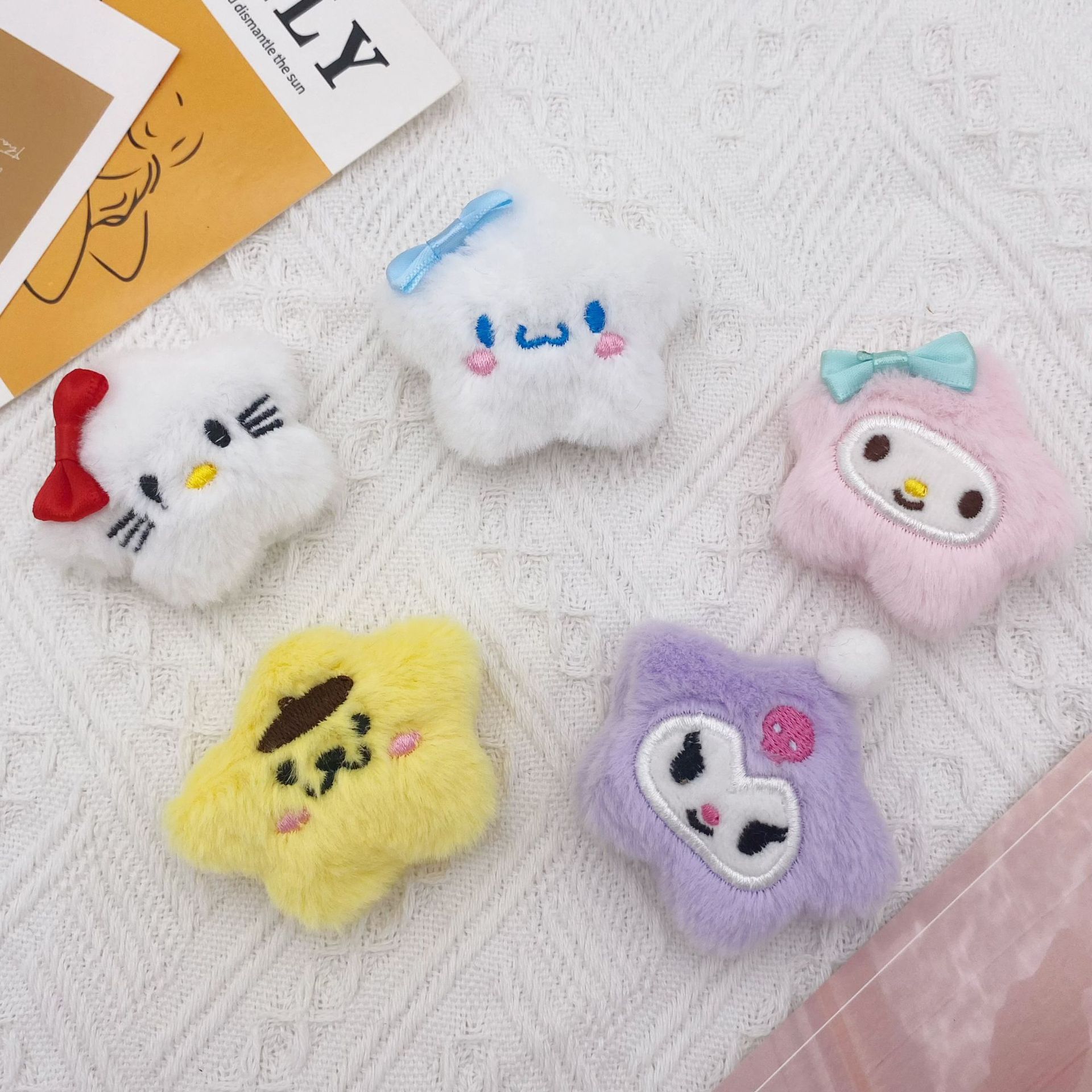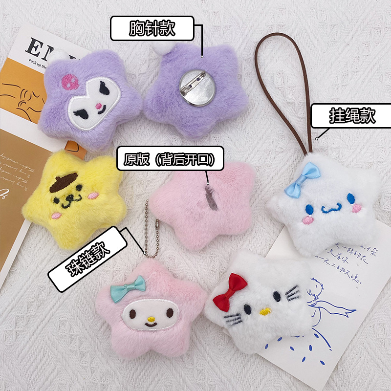 Cartoon Plush Stars Sanrio Small Male Pendant Sweet Girl Heart Bag Pendant Clothes Brooch Stall