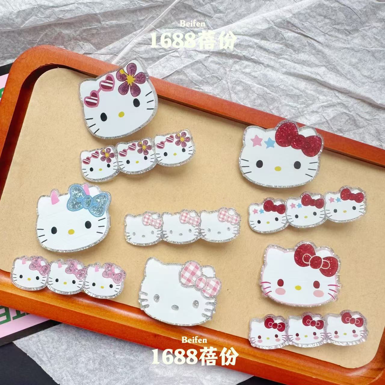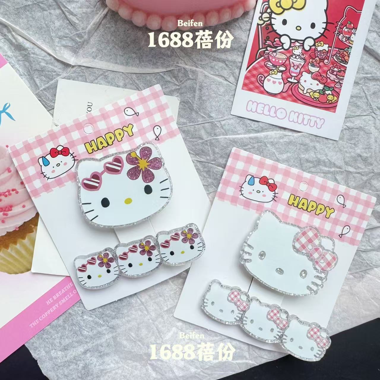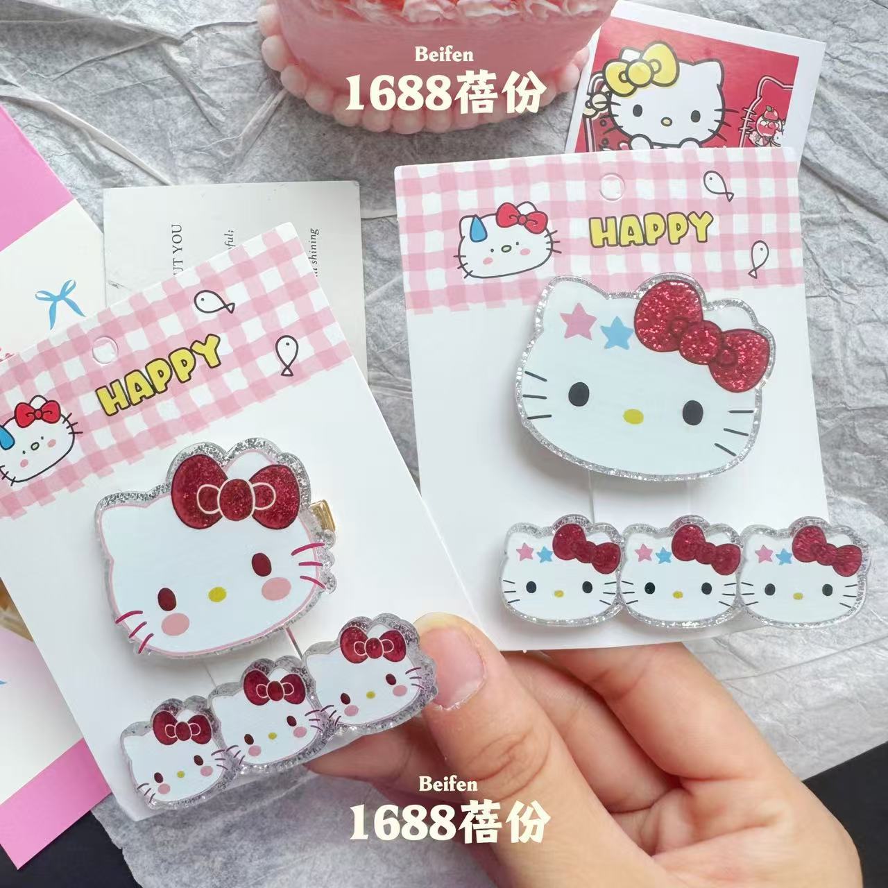 Acrylic Fine Glitter Cartoon Kitty Cat Hairpin Sweet And Cute Bangs Clip Kidsren's Girly Heart Duckbill Clip Hair Accessories