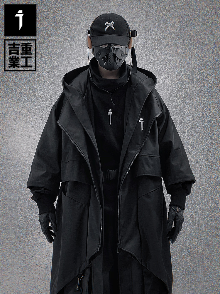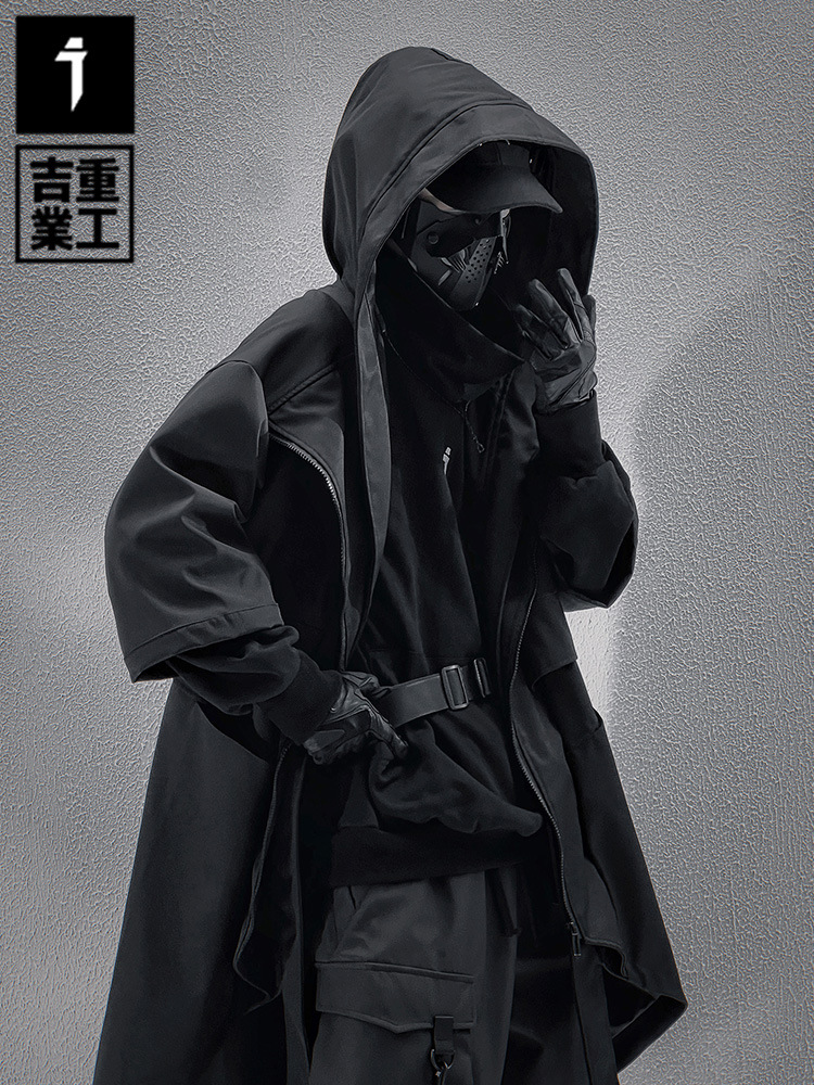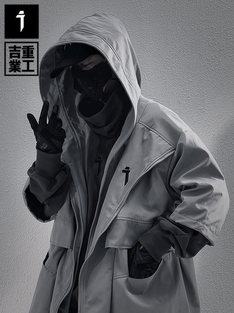Jiye Heavy Industry Guochao Spring And Autumn College Style Mid-sleeve Y Coat Men's Loose Casual Hooded Mid-length Coat