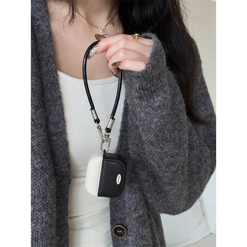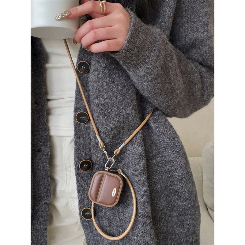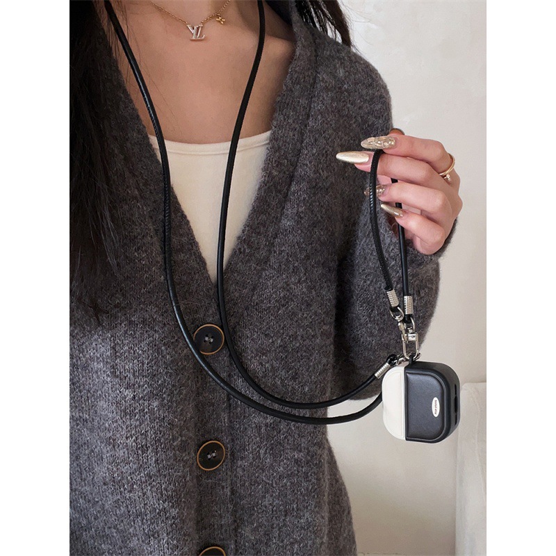 Retro Cool Style Leather Contrasting Color Airpods4 Protective Case With Magnetic Suction And High-End Feel For Airpodspro Second And Third Generations