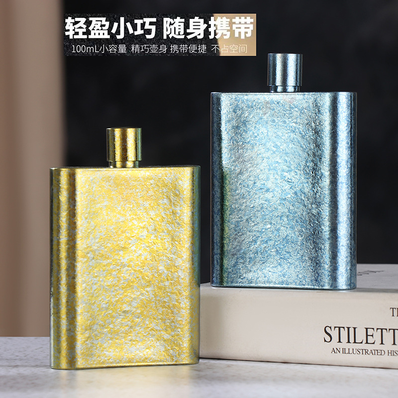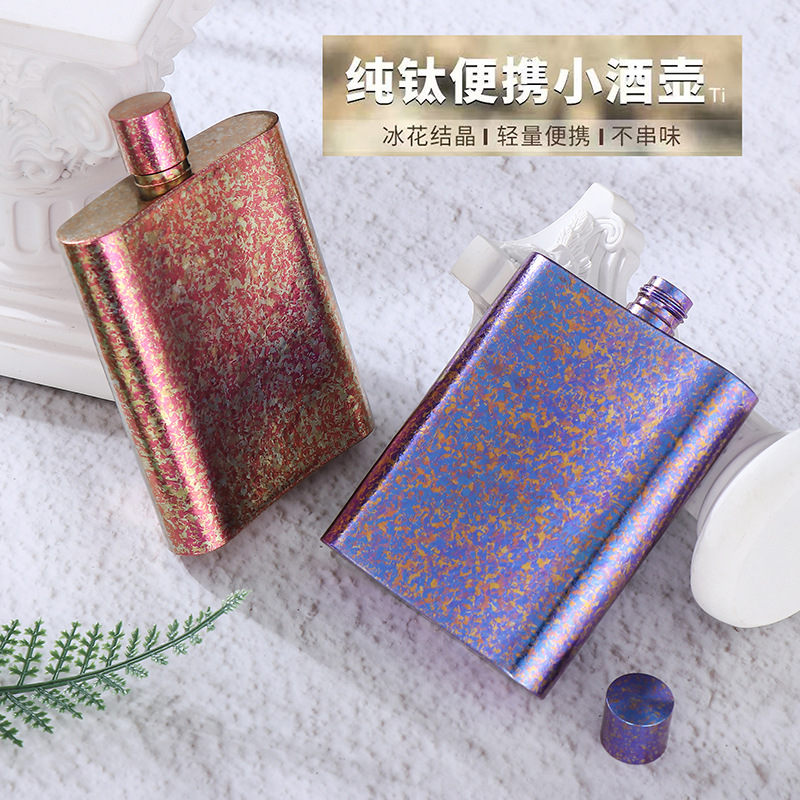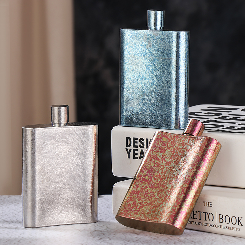 High-End Pure Titanium Flat Wine Bottle 100ml Outdoor Portable Wine Set White Wine Wine Bottle Mini Wine Bottle Drinking Wine Bottle