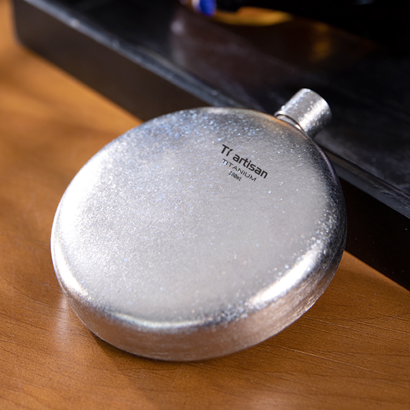 Pure Titanium Portable Wine Bottle 130/180/230 Outdoor Flat Round Wine Bottle Mini Wine Bottle Camping Style Portable Pure Titanium Wine Bottle