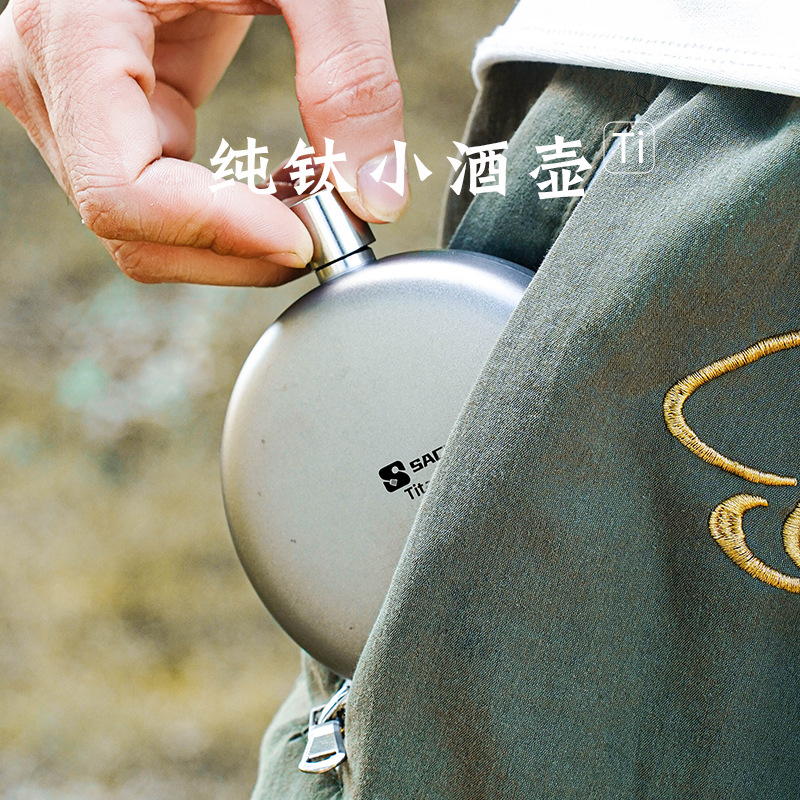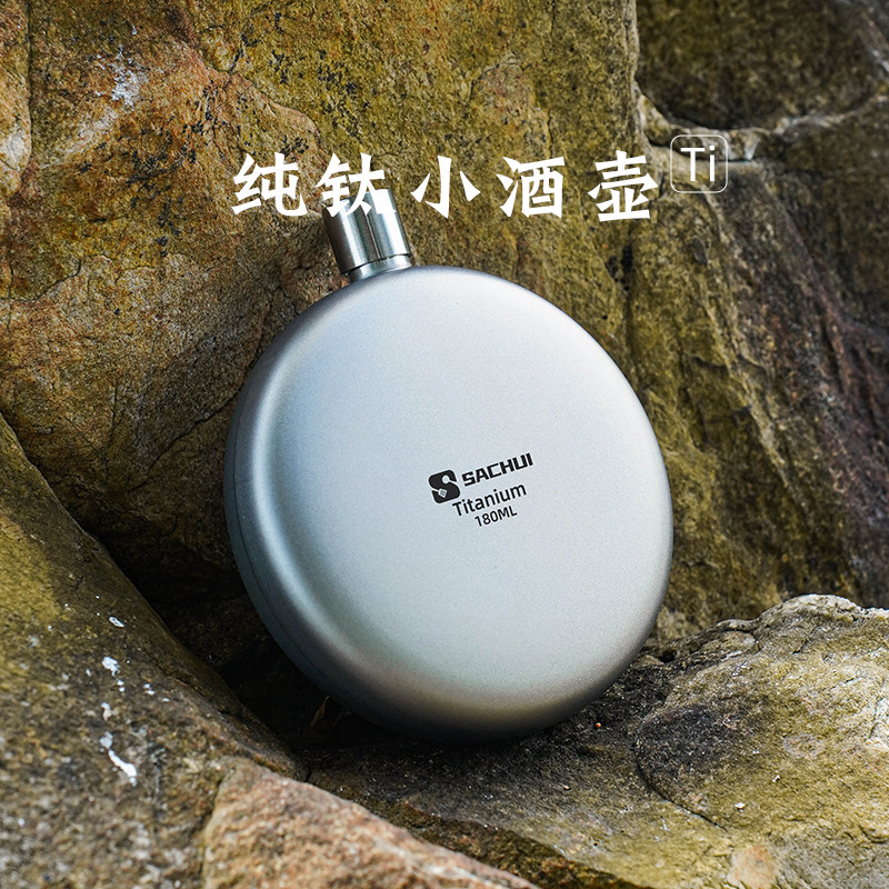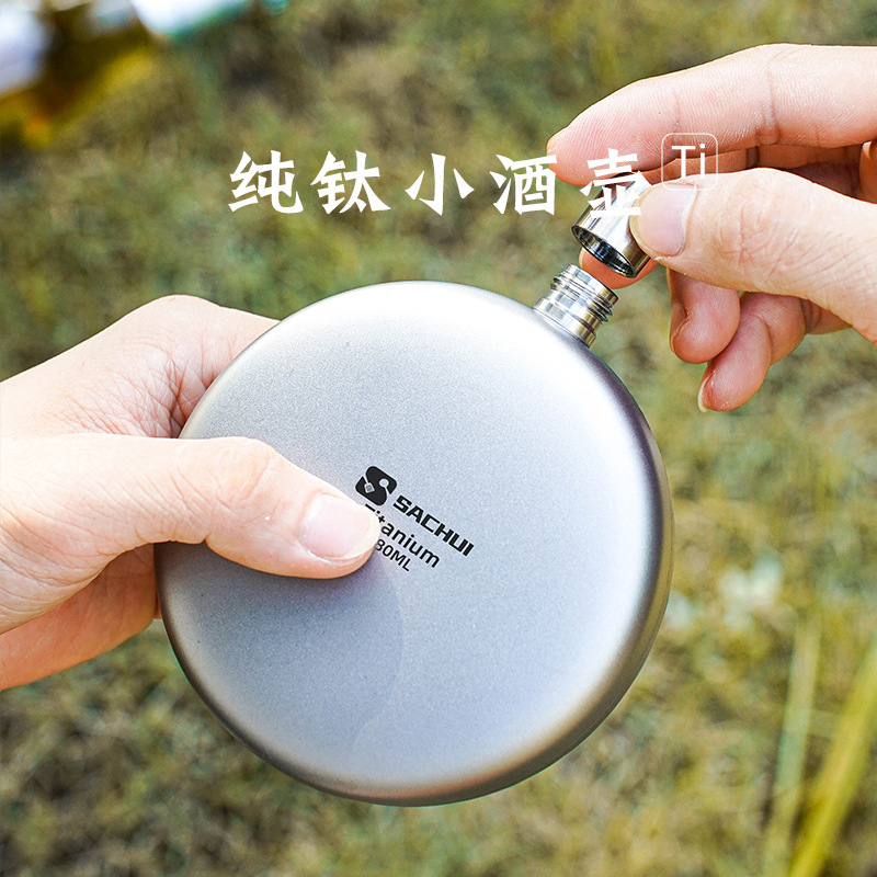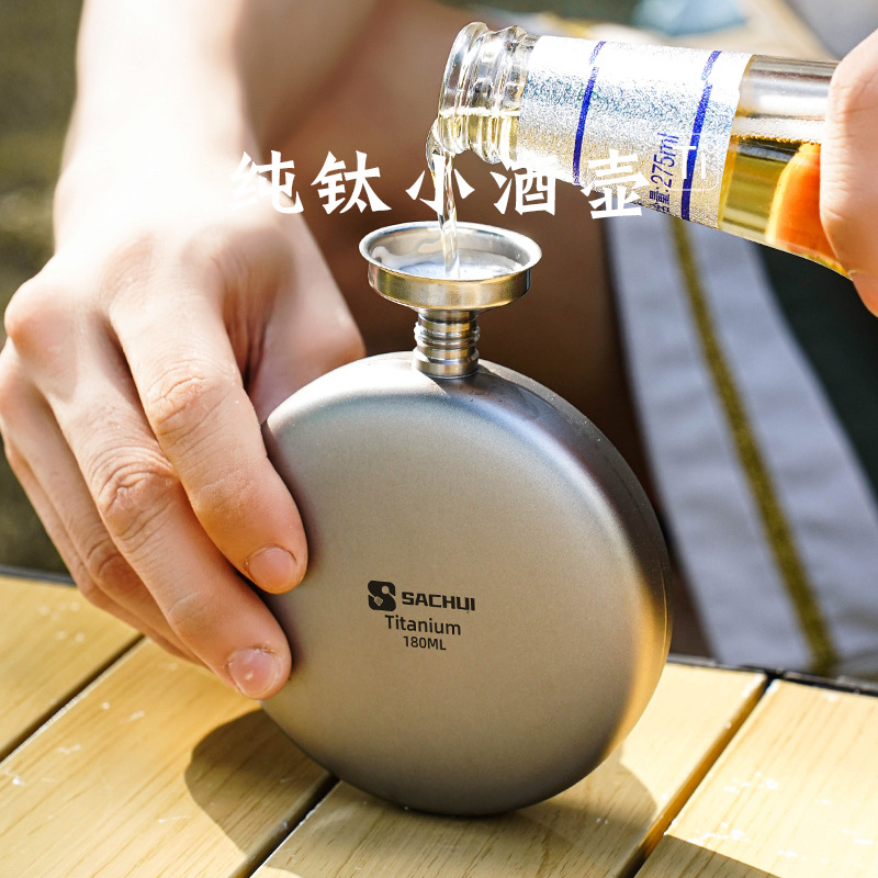 Pure Titanium Portable Flask Outdoor Flat Round Flask Mini 0.15kg Flask Camping Portable Thickened Liquor Bottle Small Wine Bottle
