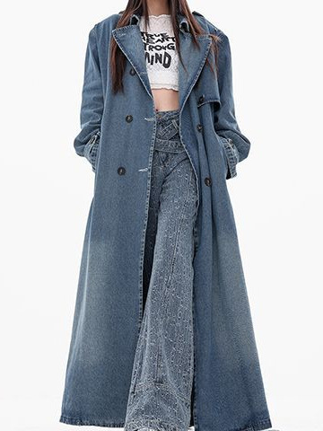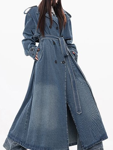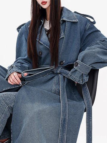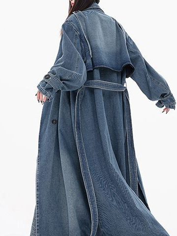 Vintage Blue Denim Coat Women's Spring Loose All-match Washed Old Profile Mid-length Waist Coat