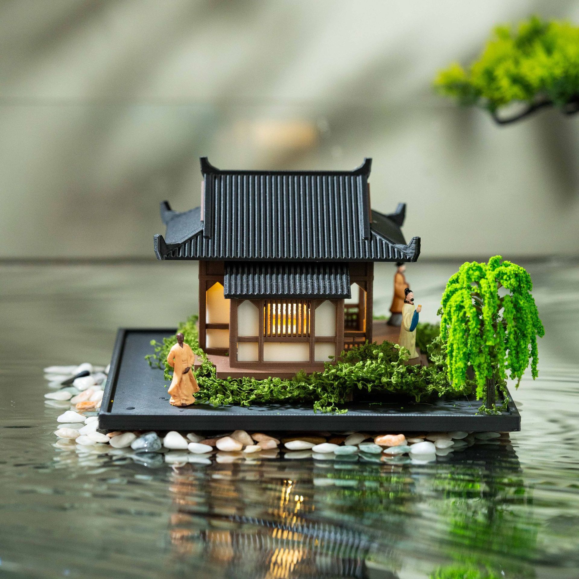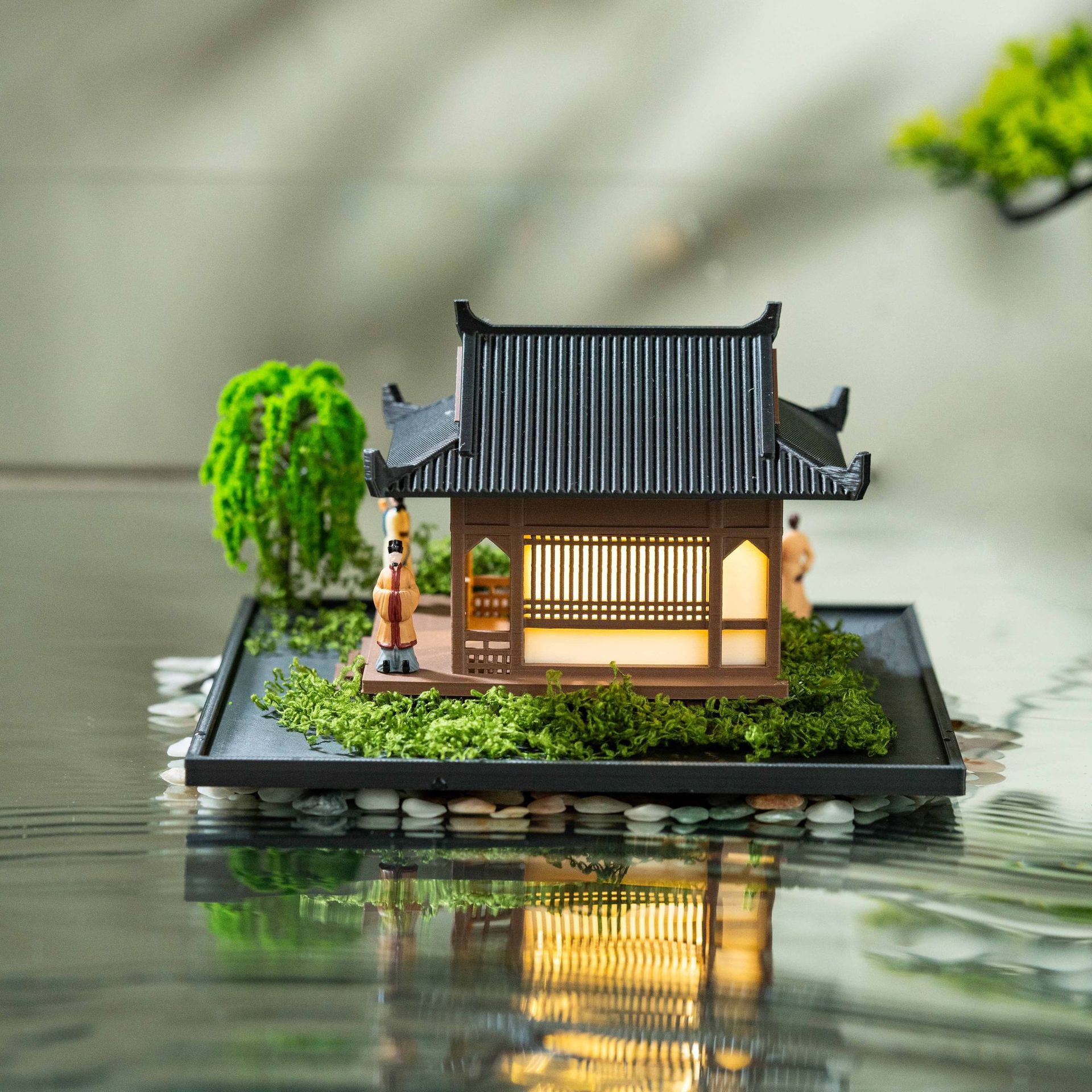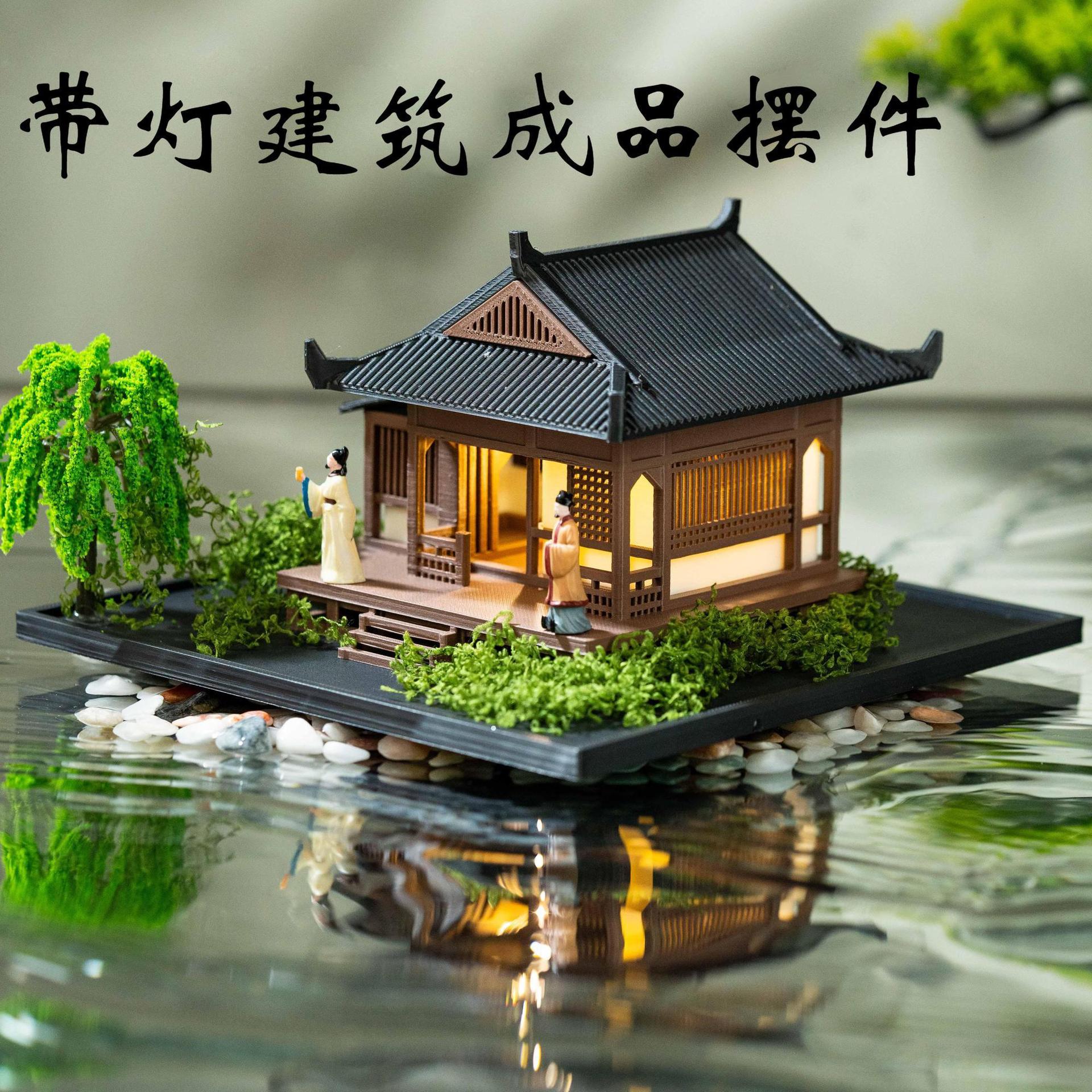 Advanced Healing Desktop With Light House Building Pavilion Ornaments Micro Landscape Landscaping Finished Model Ornaments