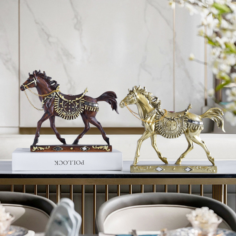 Light Luxury Resin Running Horse Ornaments Home Living Room Office Desktop Lucking Crafts Decorations