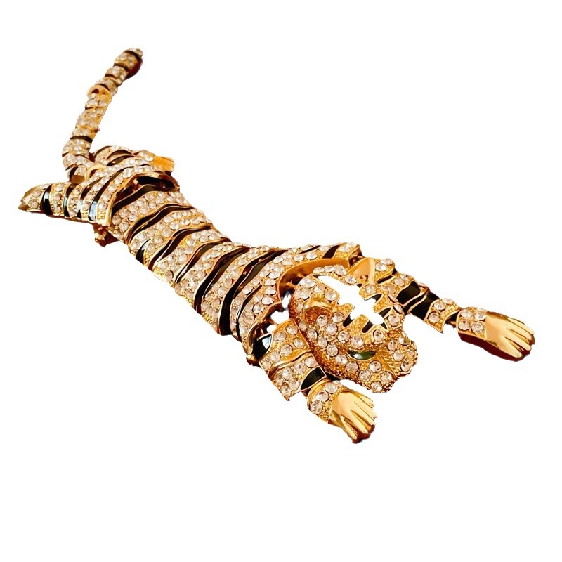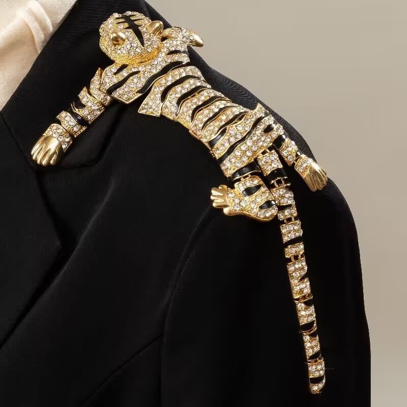 Zinc Alloy Rhinestone Middle Tiger Brooch Heavy Industry Inlaid Full Diamond Corsage Light Luxury Fashion Jewelry Straight Hair