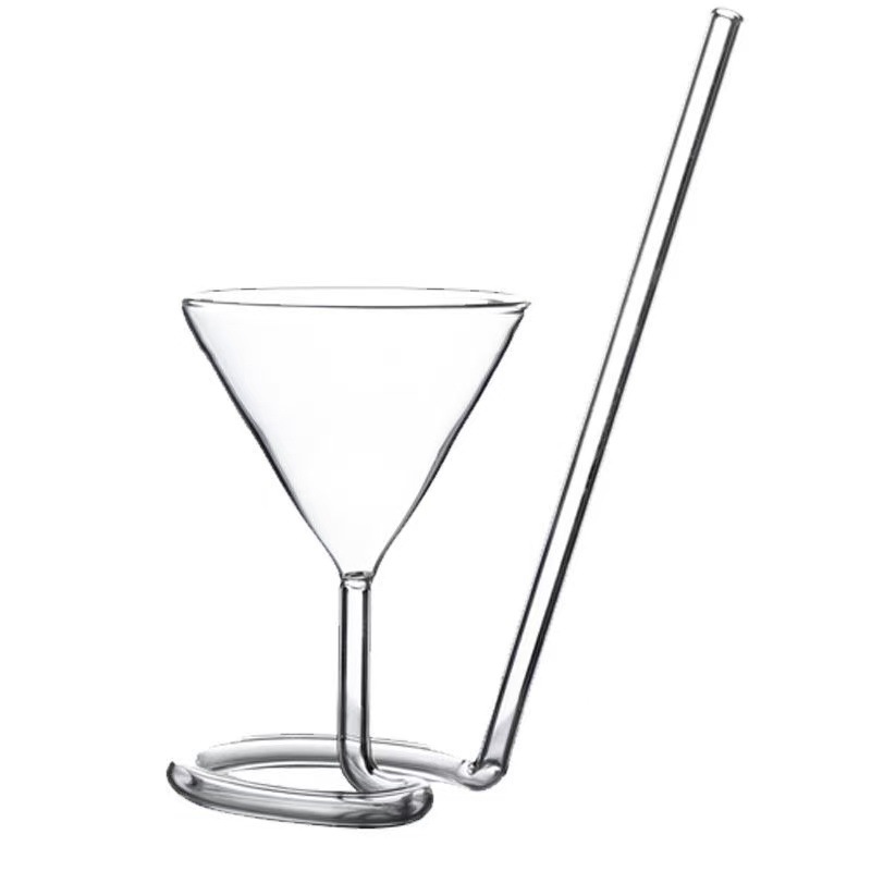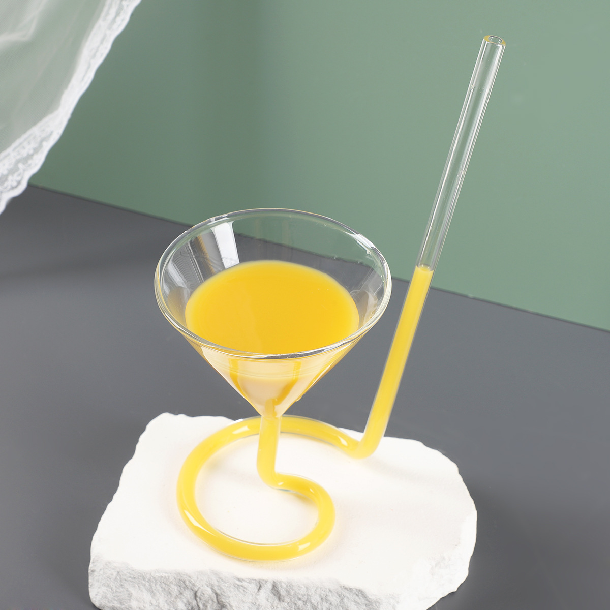 Creative Glass Spiral Cocktail Glass Rotating Martini Wine Glass Creative Straw Cup Juice Coffee Vampire Cup