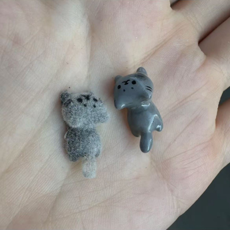 A Little Kitten In One Bite, Furry And Cute Flocked Blue Cat Earrings, Small Cartoon Gentle Animal Earrings