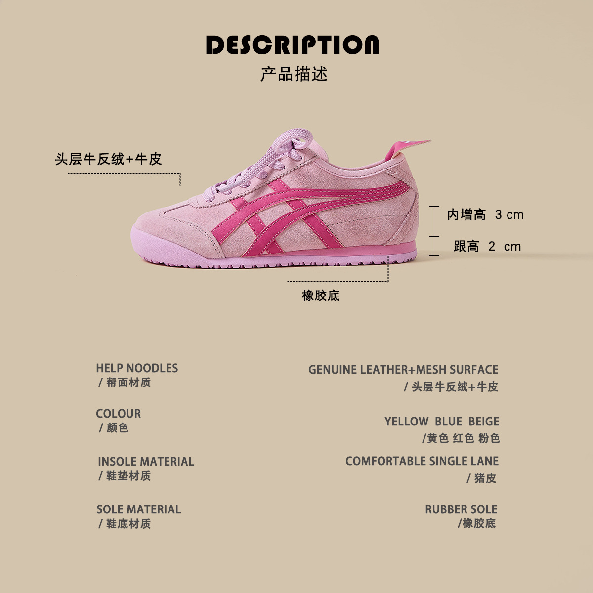 Genuine Leather Version ~ Inner Heightening Pink Moral Training Shoes For Women Lightweight Soft-Soled Casual Sports Forrest Gump Shoes Sneakers