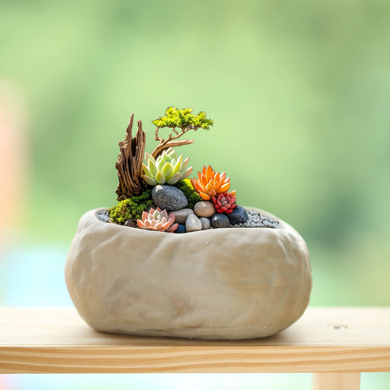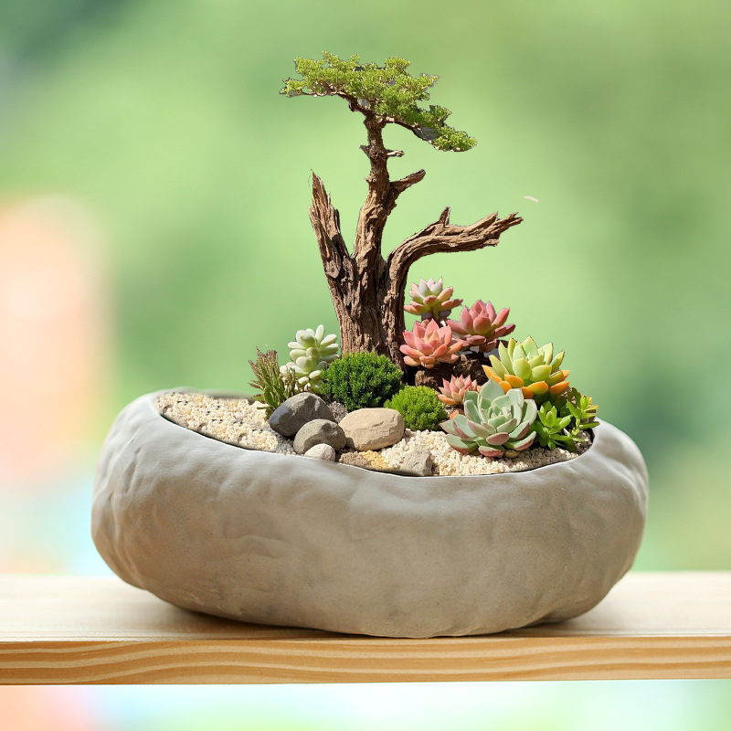 Large-diameter Succulent Planter With Bird Motif, Handmade Ceramic Flower Arrangement, Home Decor Item For Succulents.