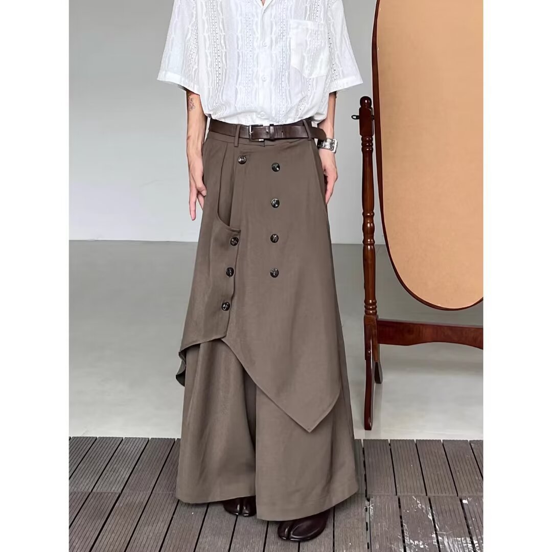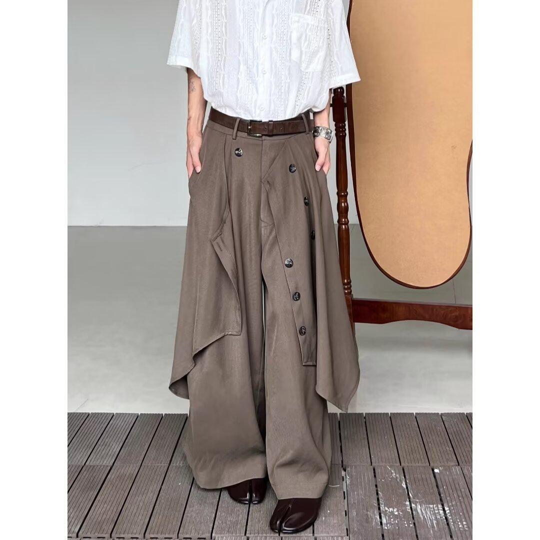 Leffore Japanese Style Retro High-End Yohji Yamamoto Culottes Asymmetrical Design Trousers Drapedy Wide-Leg Pants