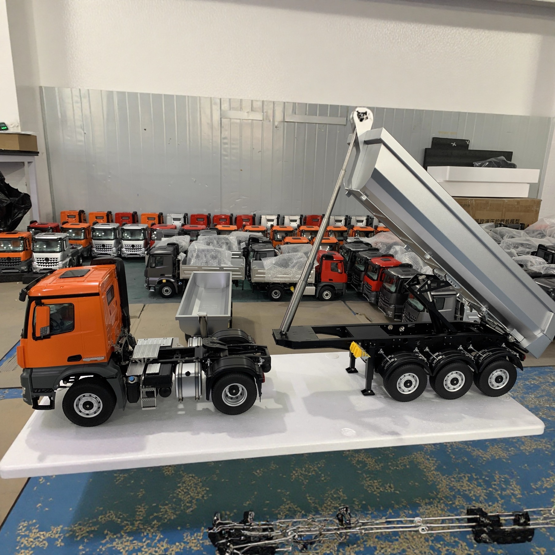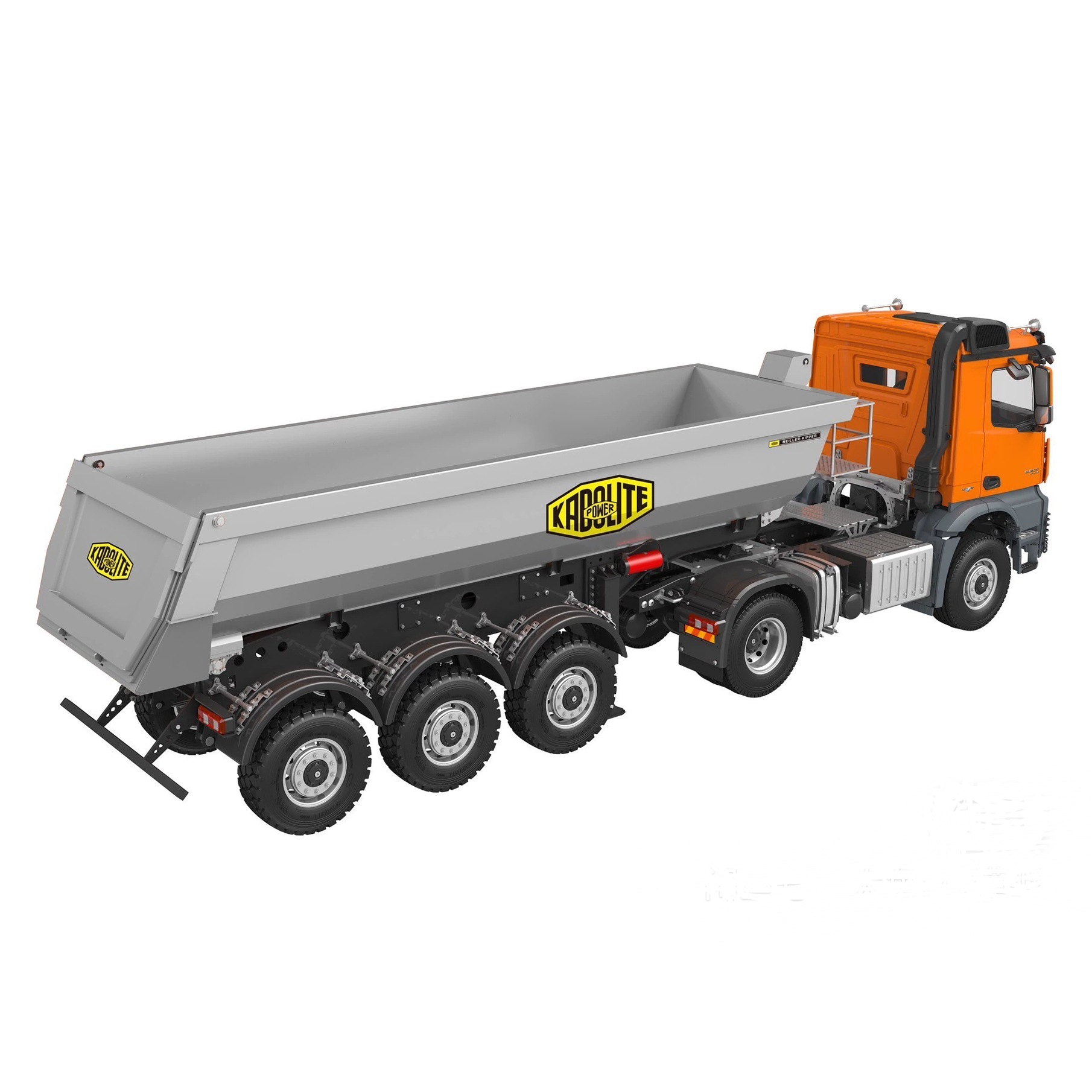 Kabolite 1/14泥头车4x4拖头3轴自卸挂车不锈钢车斗丝杆举升K5801