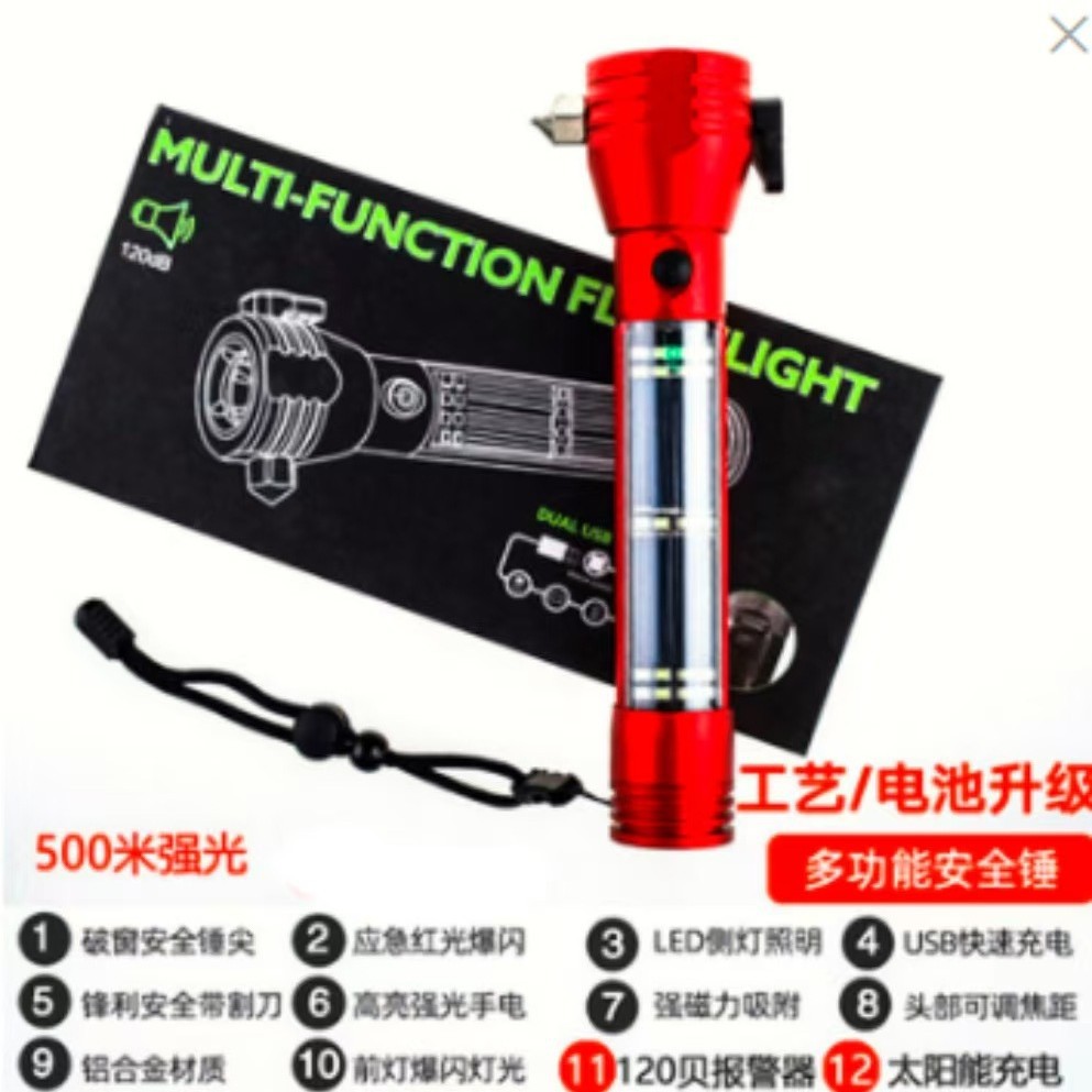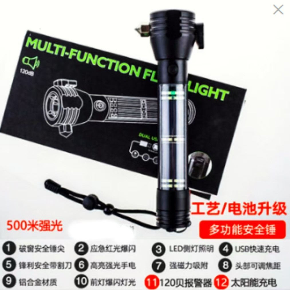 Ten-in-one Multifunctional Safety Hammer Flashlight Car Self-rescue Broken Window Hammer Fire Emergency Outdoor Strong Flashlight