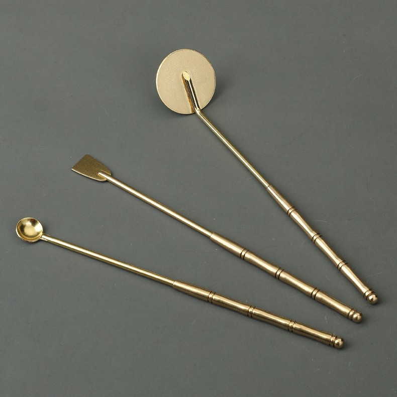 Copper Handle Entry Incense Ceremony Three-piece Incense Tool Incense Spoon Incense Shovel Incense Gray Pressing Tool Appliance