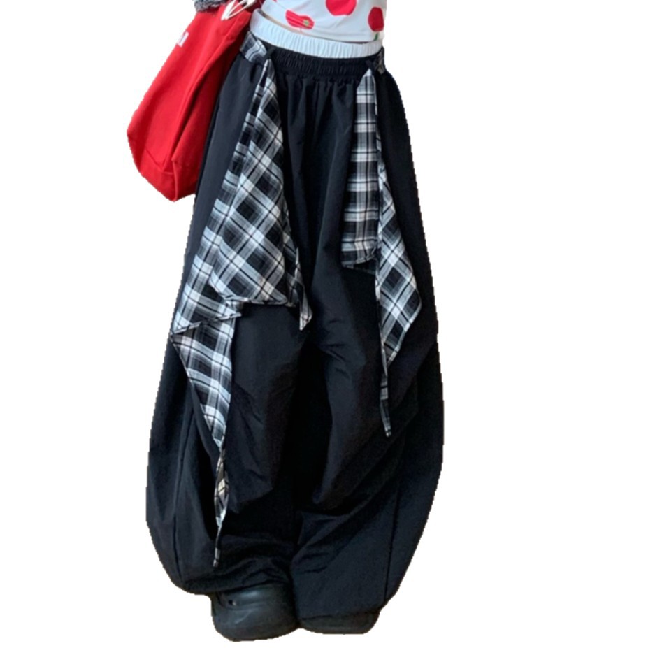 American Hip-Hop Street Dance Layered Detachable Wide-Leg Pants For Women Summer Loose Drape Scimitar Casual Pants Jazz Dance Pants