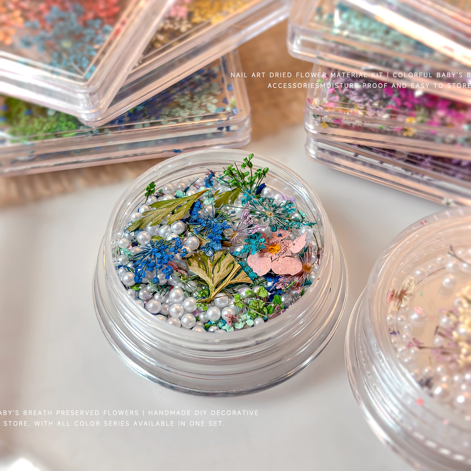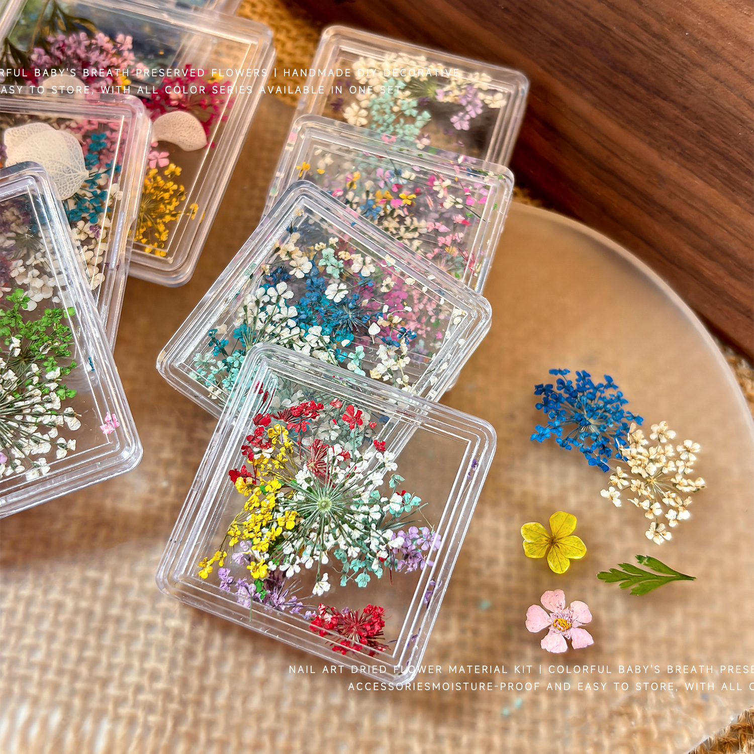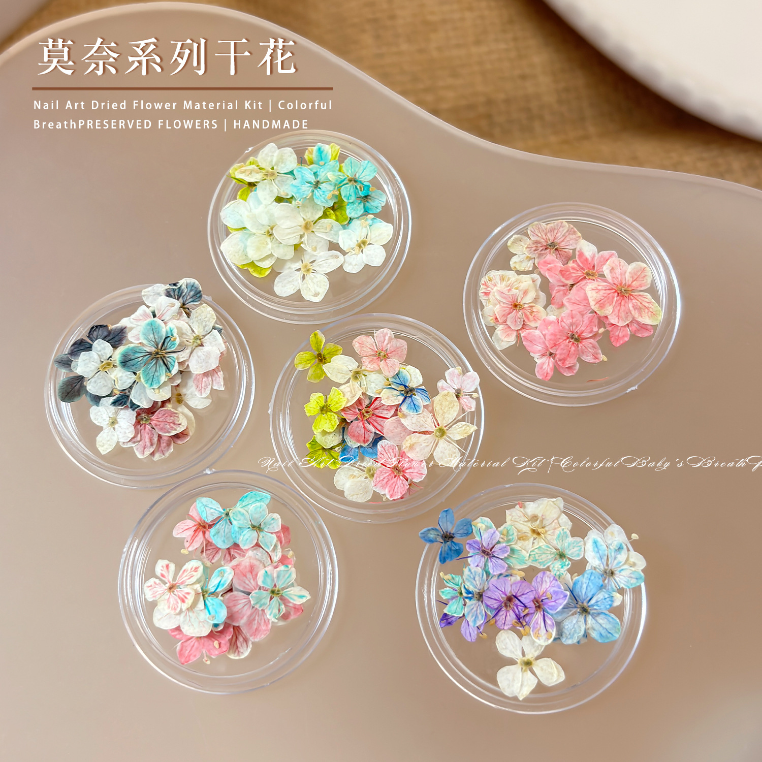 天然干花美甲素材春日混彩满天星碎花DIY油画五瓣花美甲干花