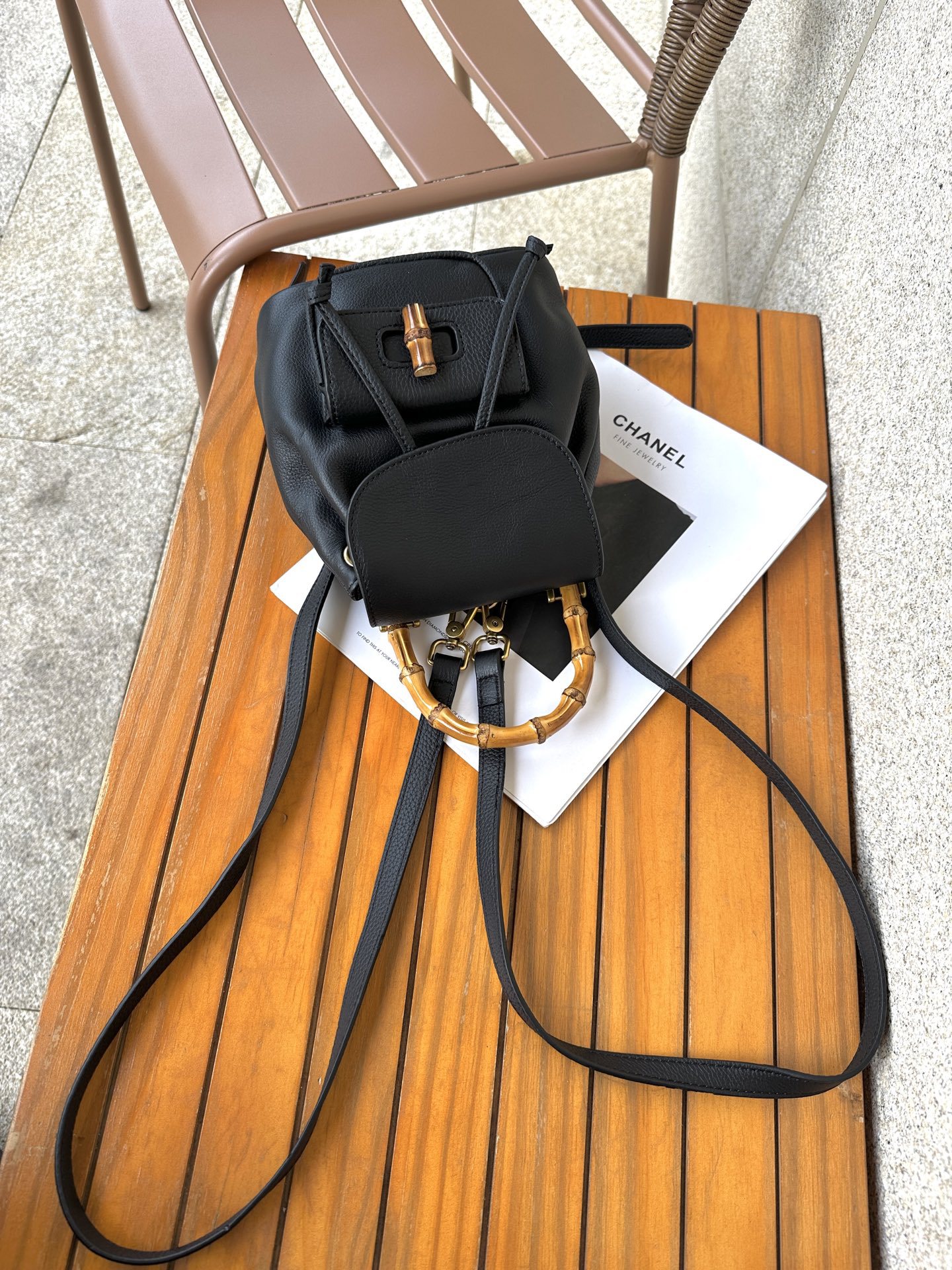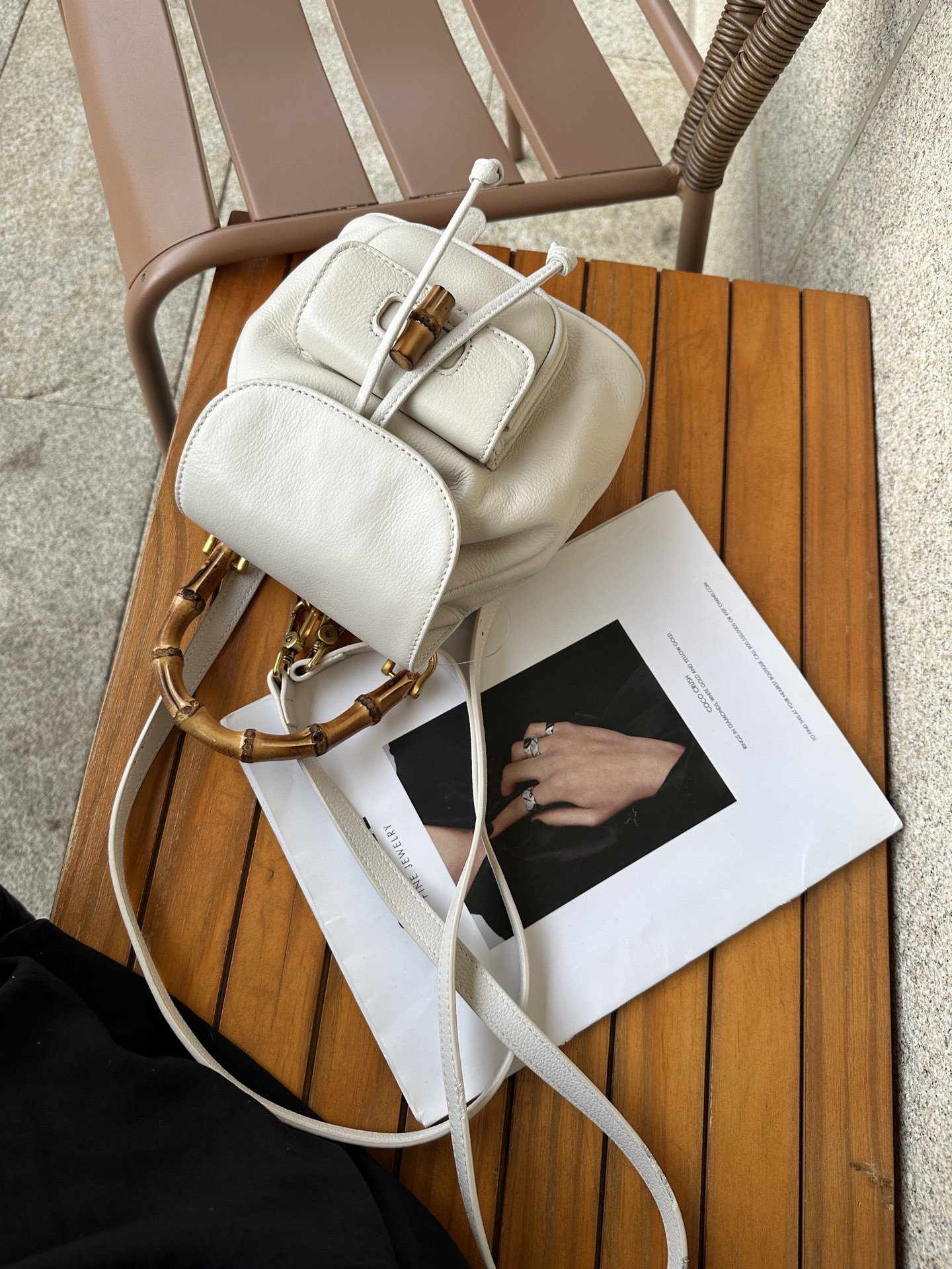 Ss Catwalk Genuine Leather Small Backpack Mini Bamboo Shoulder Bag Thickeneded First Layer Cowhide Drawstring Women's Bag
