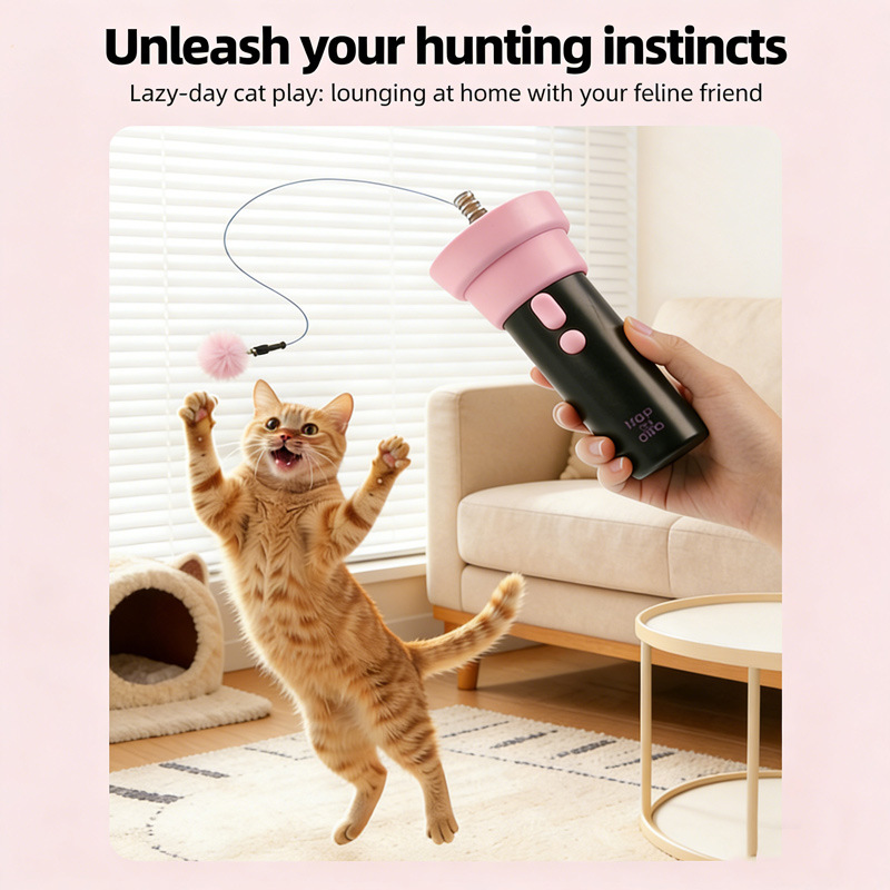 新电动钓猫器一键发射枪可回弹射消耗体力逗猫玩具电动逗猫棒