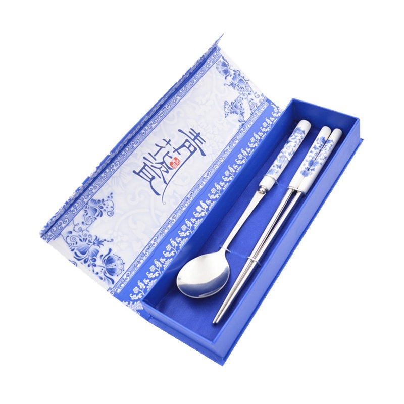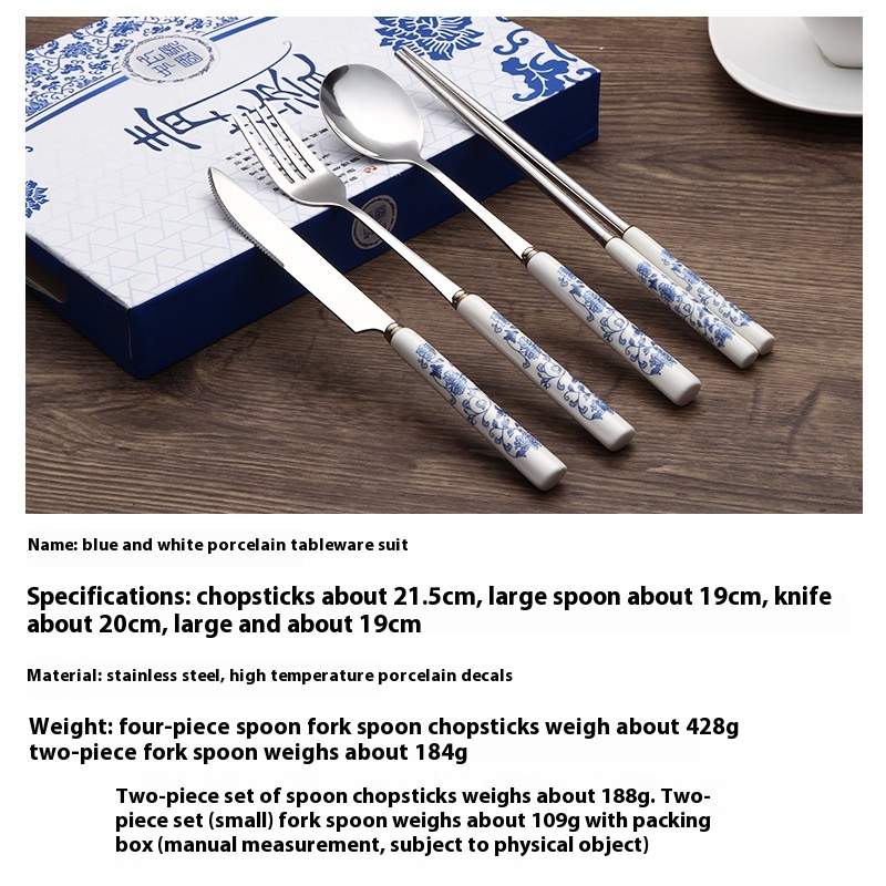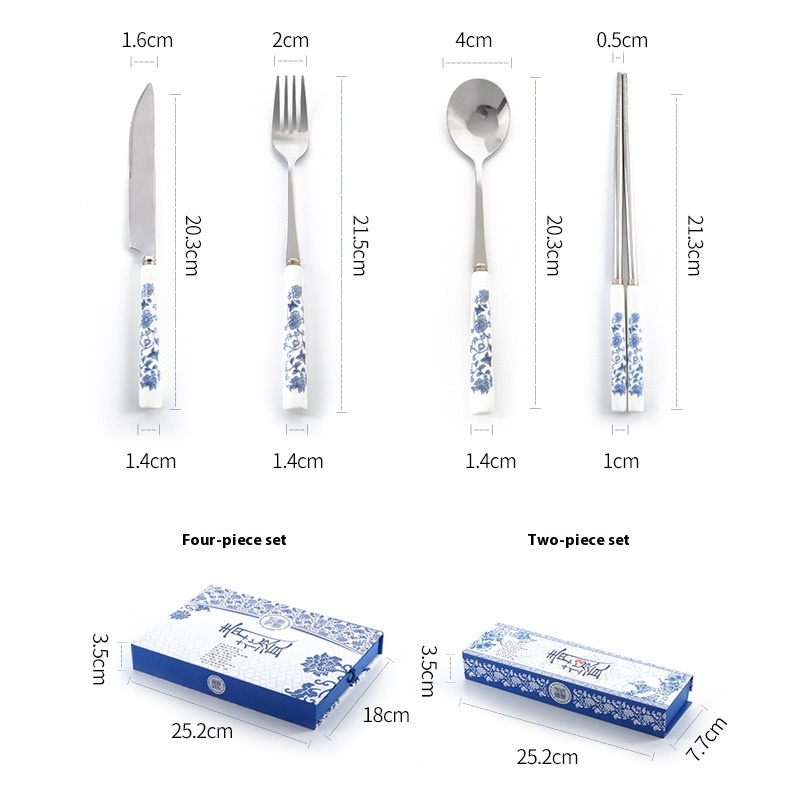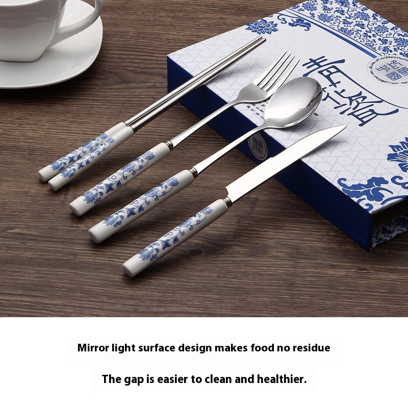 Blue And White Porcelain Tableware, Knife, Fork, Spoon, Chopstick Set, Special Chinese Style Gift, Business Meeting Gift For Foreigners Abroad
