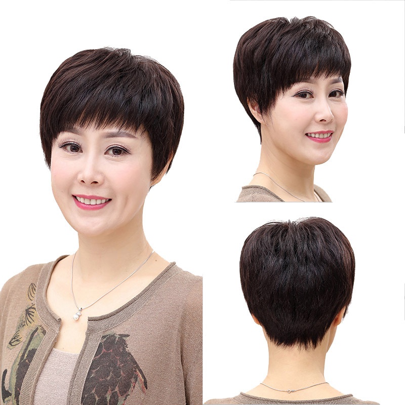 Real Hair Wig For Women With Short Hair, Middle-aged And Elderly Wigs, Hand-knitted Real Hair Wigs