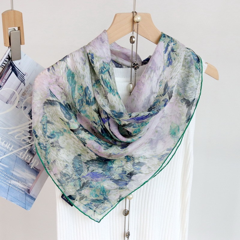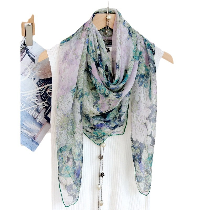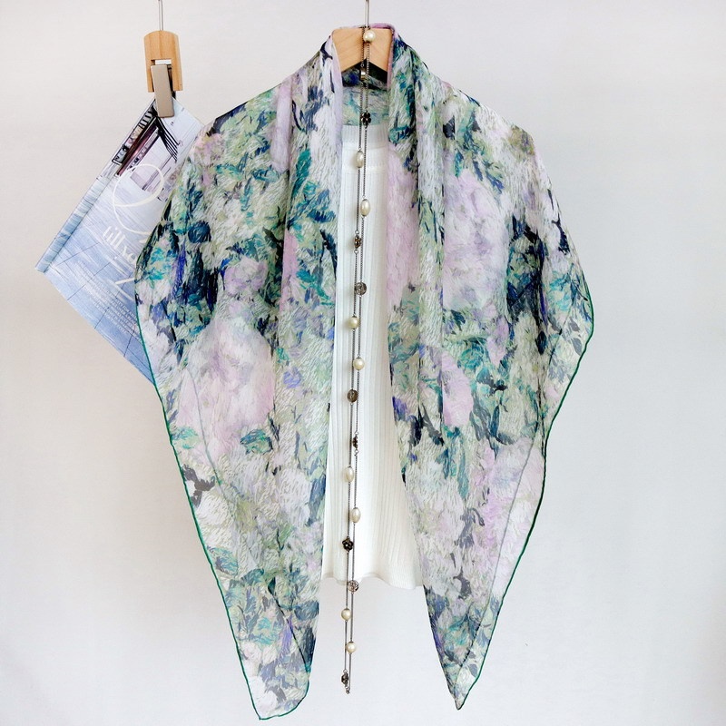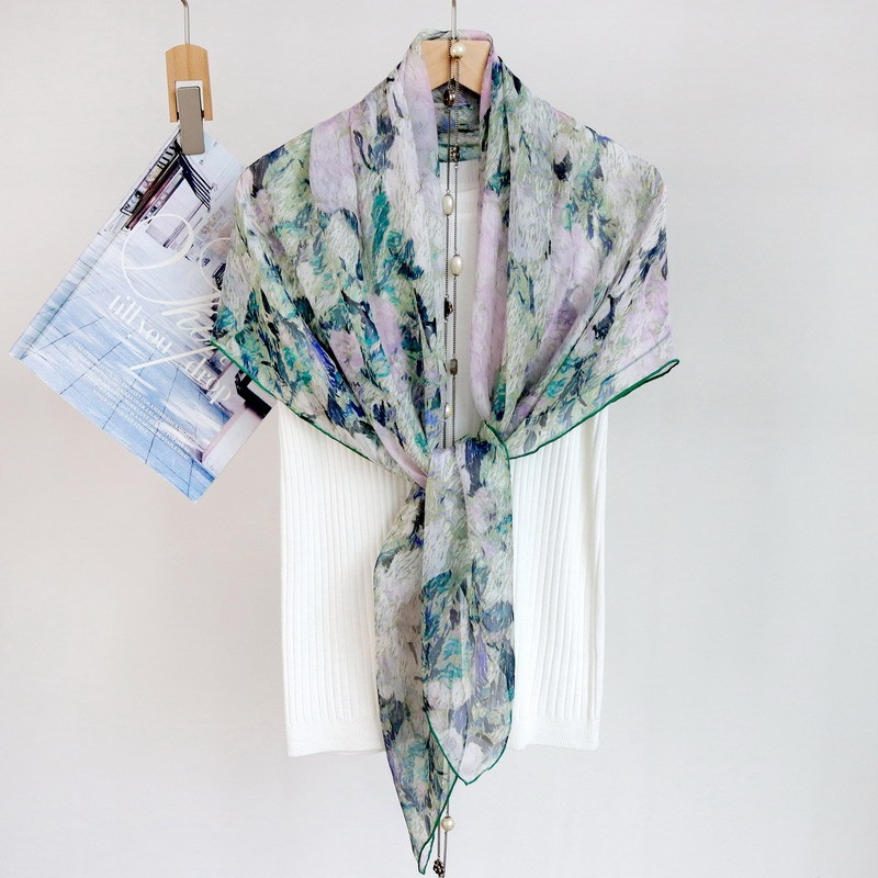 Spring And Autumn Oil Painting Hydrangea Thin Silk Thickened Chiffon Mulberry Silk 110 Large Square Scarf Silk Scarf Versatile Shawl For Women